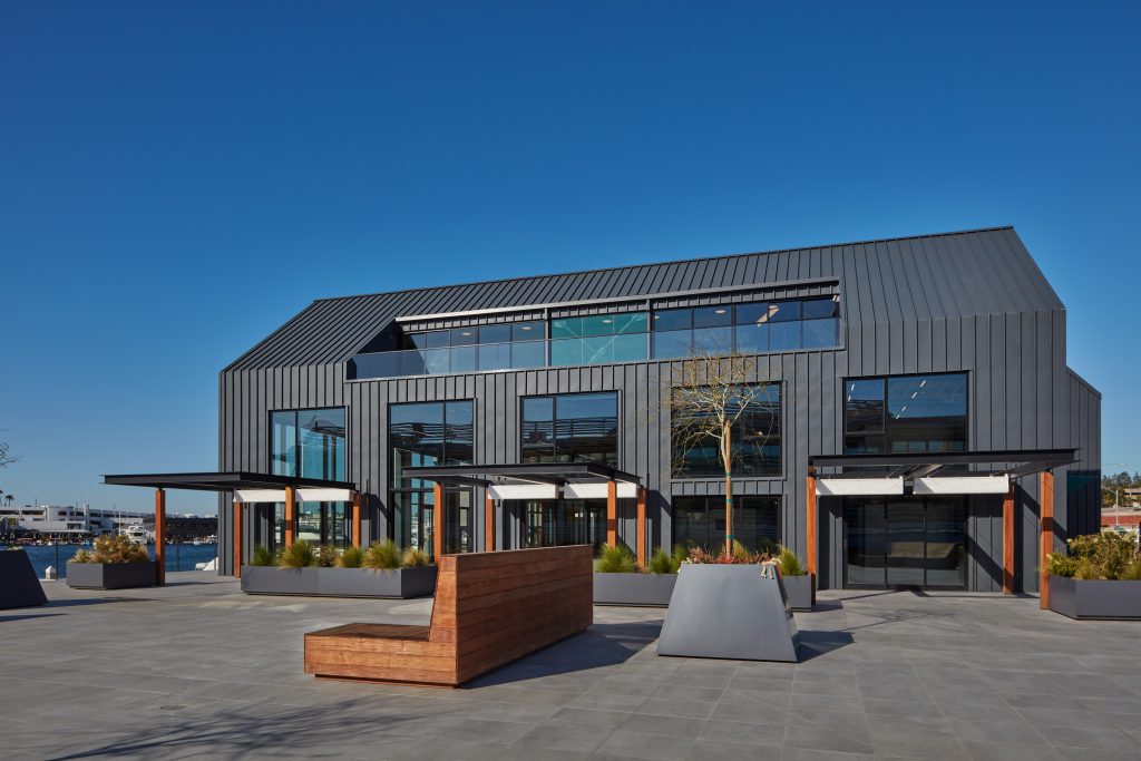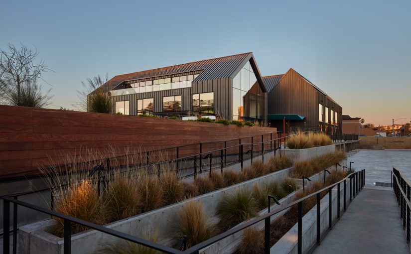 “The building’s juxtaposition of transparent and opaque surfaces creates tonal shifts and spatial depth throughout the façade. As the sun rises, standing seam metal panels glow with metallic luster while interspersed high-performance glazing reflects the sunset’s gradations.”