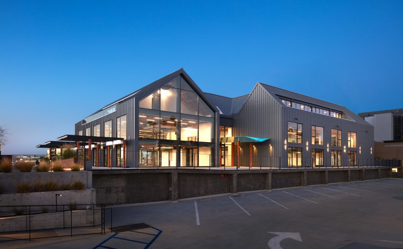 “ShubinDonaldson Architects renovate and repurpose a four-story Cape Cod-style medical centre from the 1980s into a modern creative space for commercial tenancy, articulating the marine coastal aesthetic. Situated on a concrete podium 6’ above West Coast Highway, this project creates a modern aesthetic by removing existing embellishments to enhance the clean and timeless geometry of the gabled roofs, all while staying within compliance with the Coastal Commission’s strict reframing constraints.”