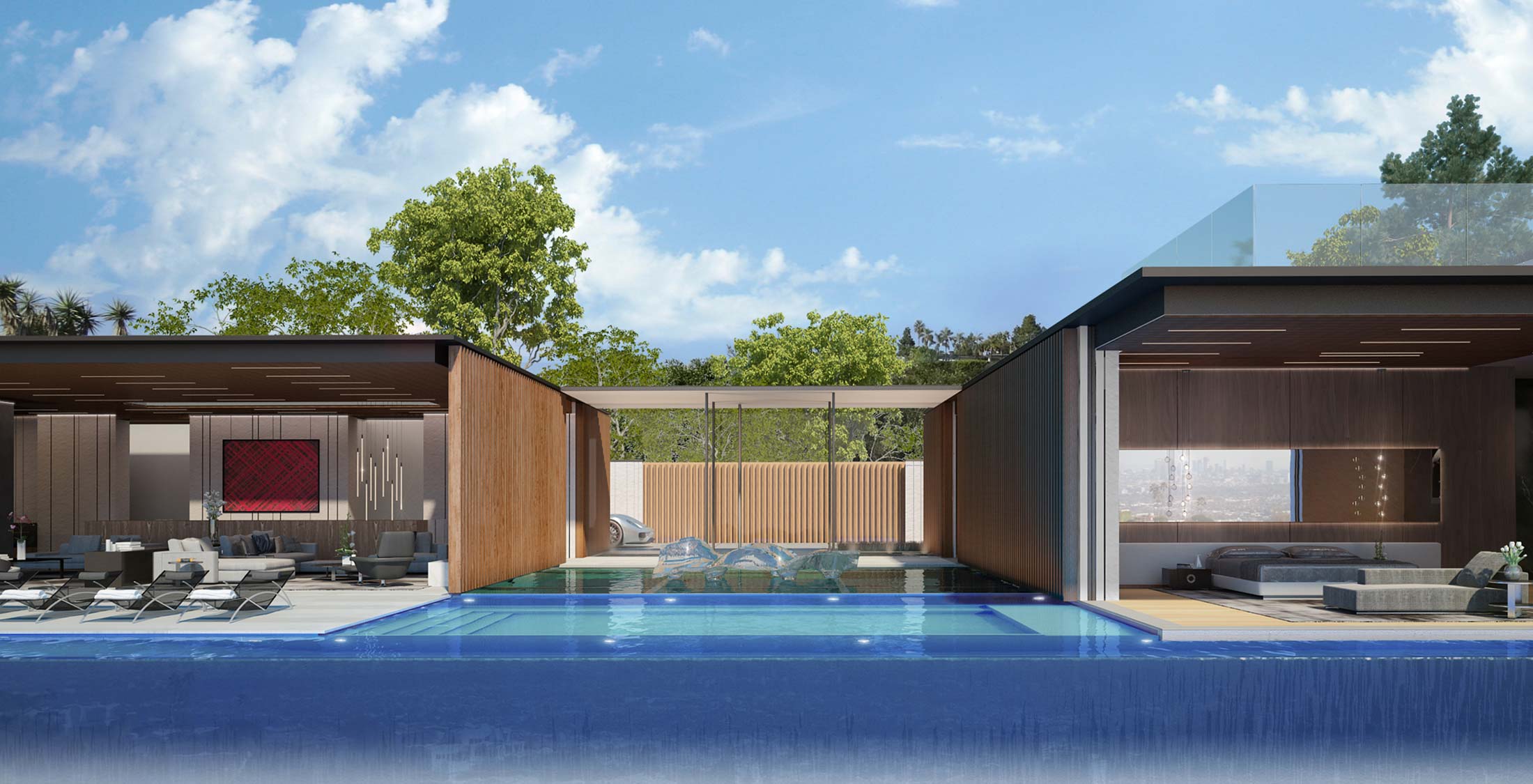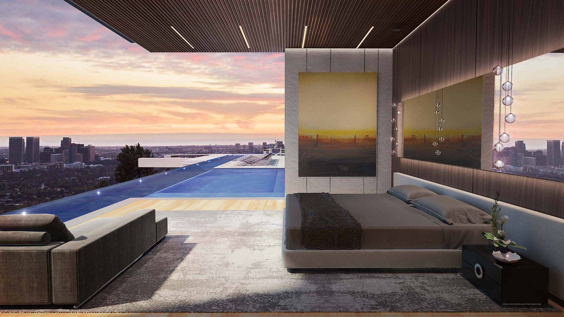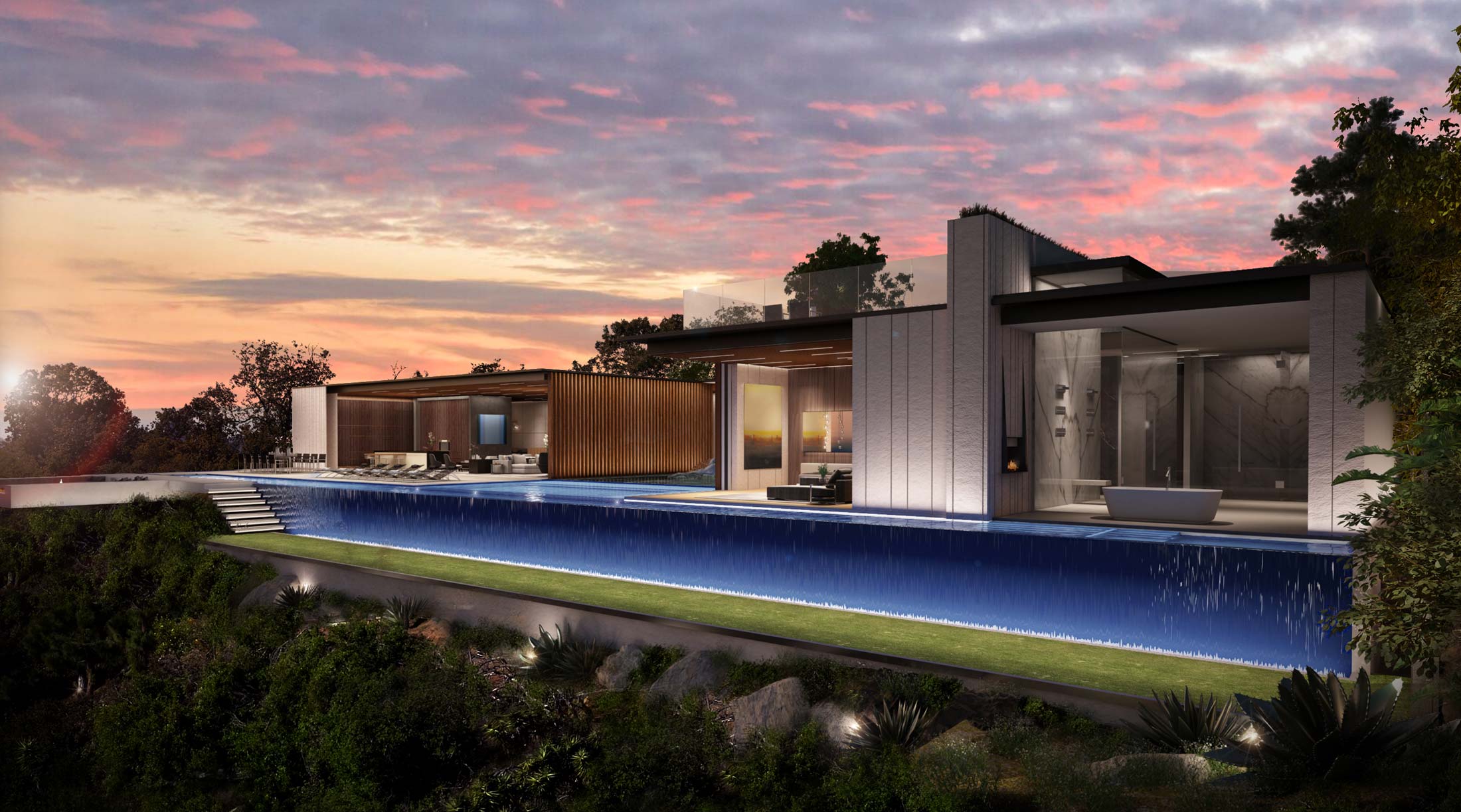 SD envisioned the site as a contained body of water within which a residence quietly floats. This creates a visual relationship between the delicately hovering architecture and the infinite reflection or the LA Basin below. Each view over the city: Westwood, Century City, Palos Verdes, Miracle Mile, Beverly Hills, Hollywood and Downtown has been carefully curated to be revealed at intervals coincident with the experience moving through the home.
