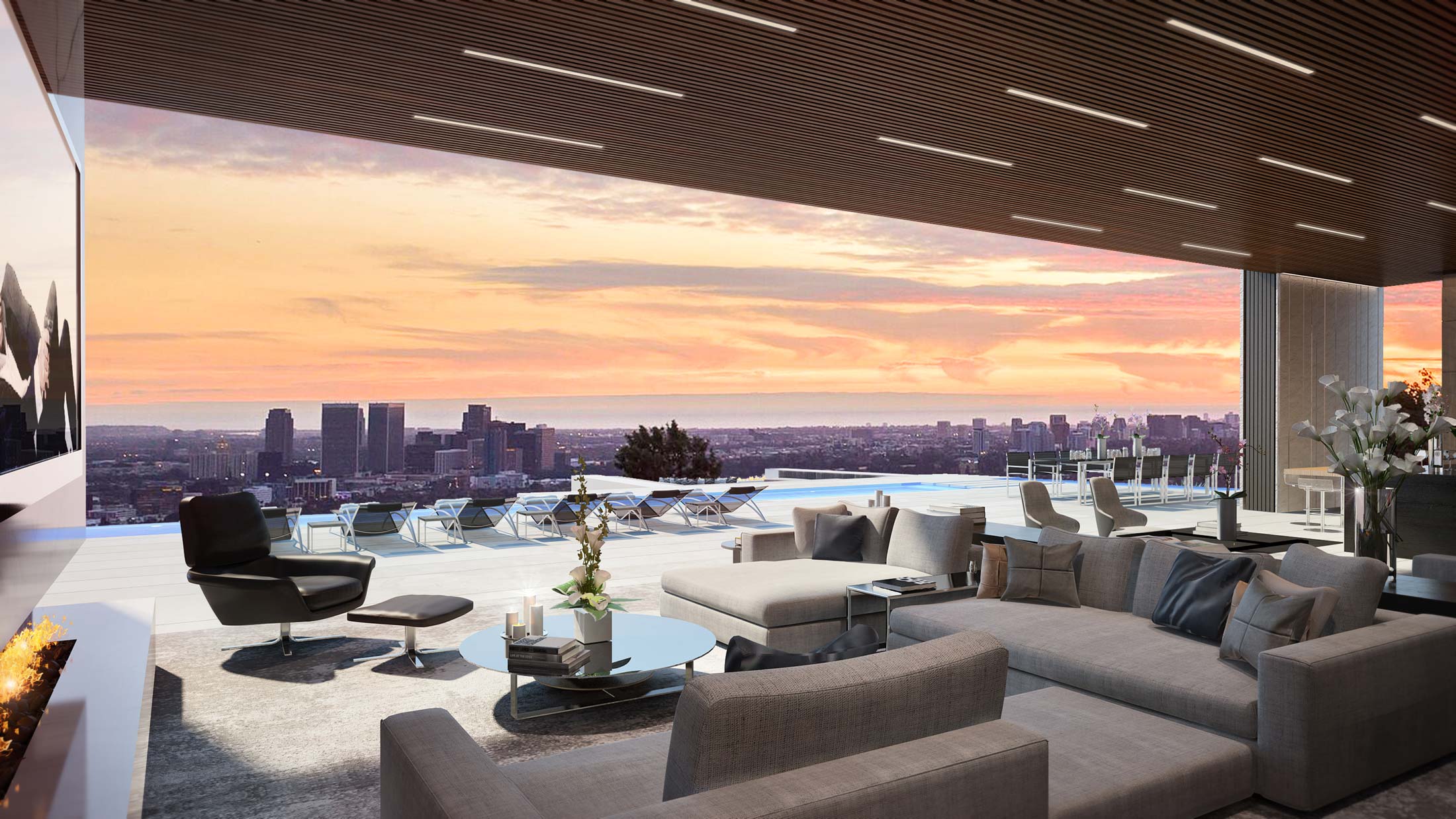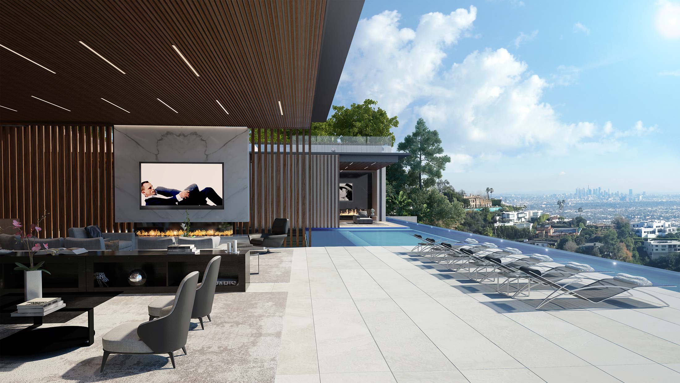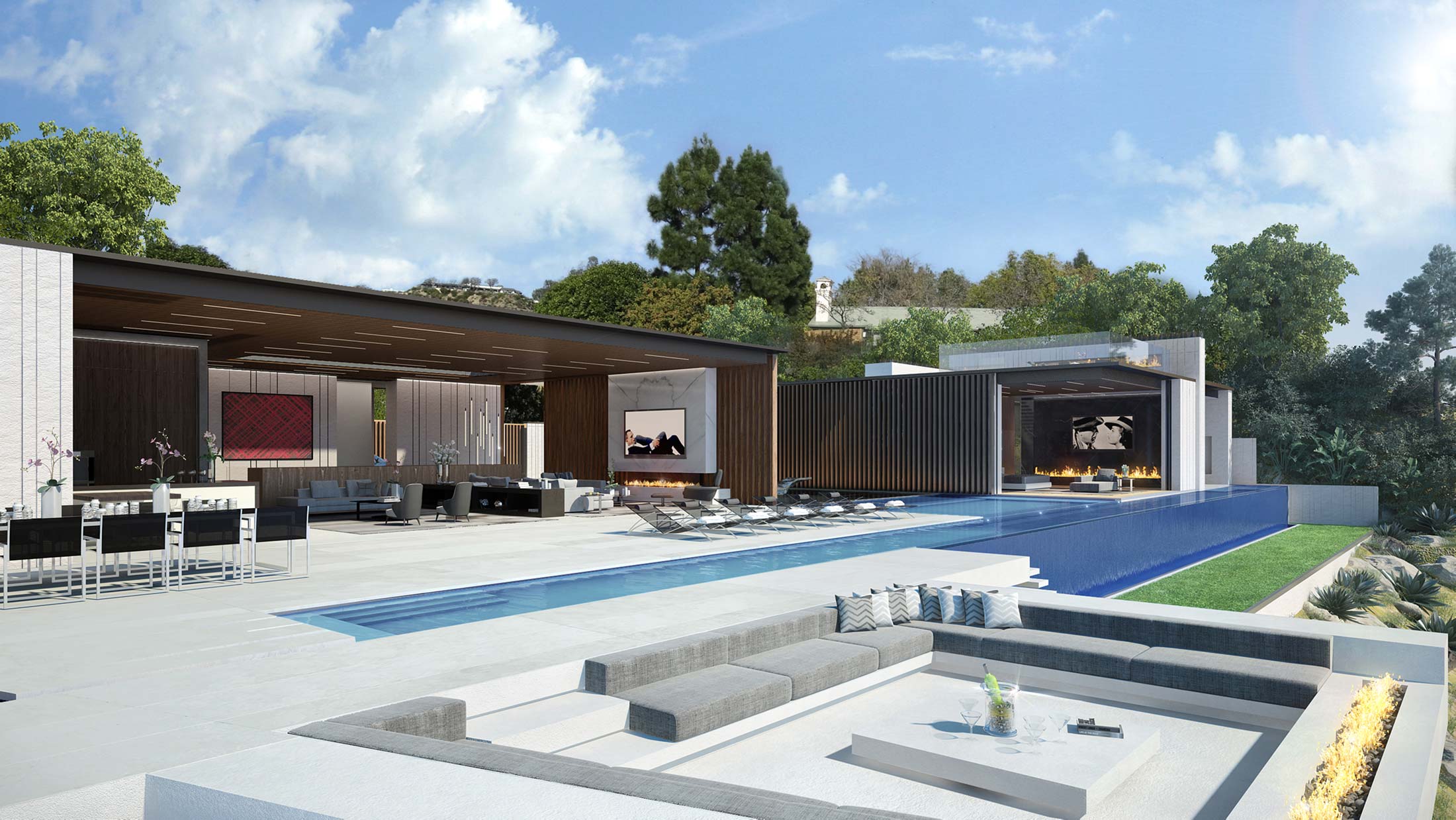 SD envisioned the site as a contained body of water within which a residence quietly floats. This creates a visual relationship between the delicately hovering architecture and the infinite reflection or the LA Basin below. Each view over the city: Westwood, Century City, Palos Verdes, Miracle Mile, Beverly Hills, Hollywood and Downtown has been carefully curated to be revealed at intervals coincident with the experience moving through the home.