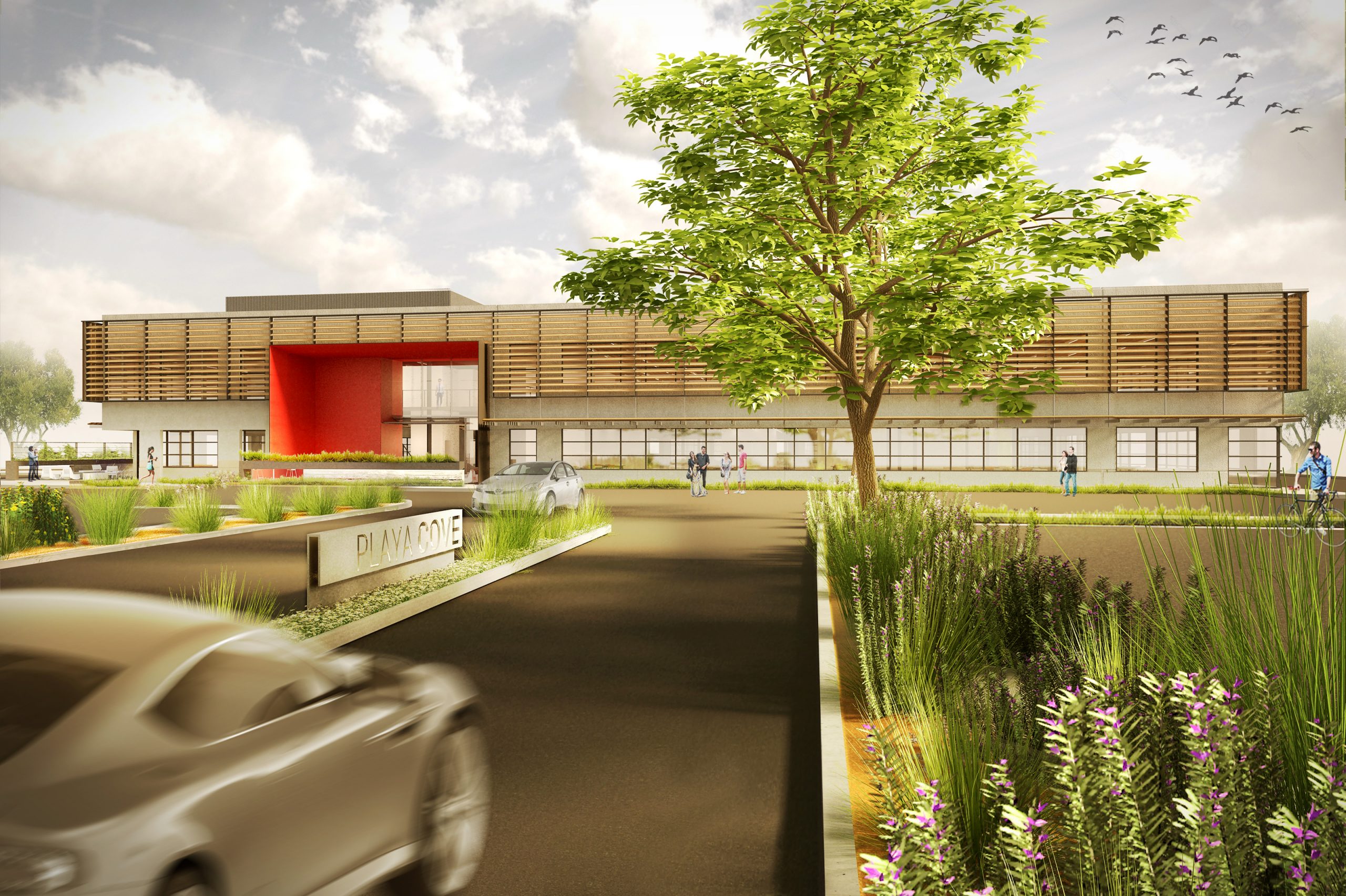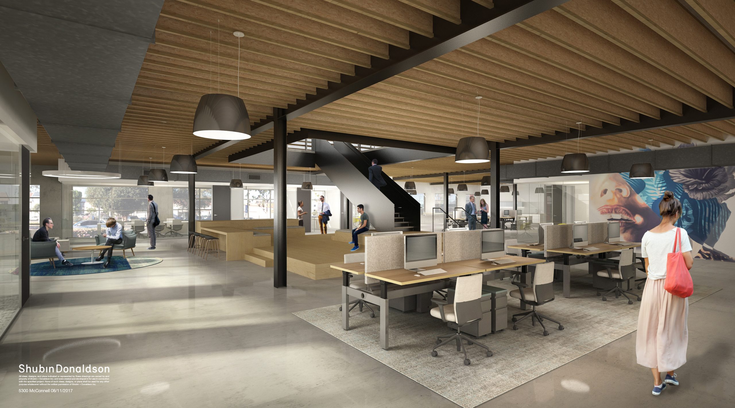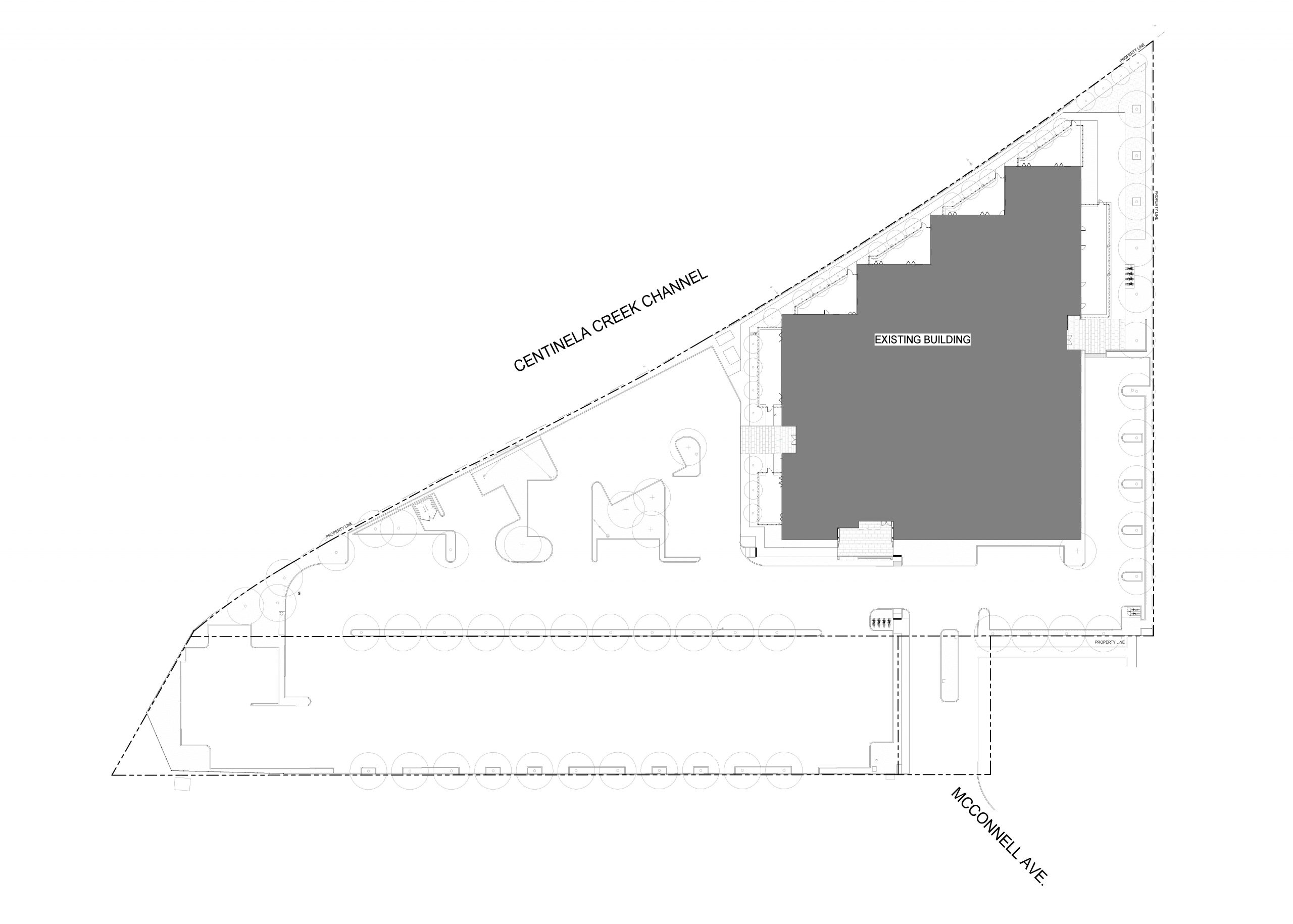 5300 McConnell is a repositioning of a 1984 concrete tilt-up building in the Playa Vista Tech District of Los Angeles with the Centinela Creek Channel as its backdrop.