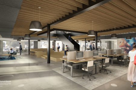 Initially built in 1984, the 73,000 square-foot building offered a generic appearance – an anonymous solution to an unknown office tenant. 30+ years later the building has a new life, bringing specific solutions to siting and targeting creative office tenants to reinvigorate the space.