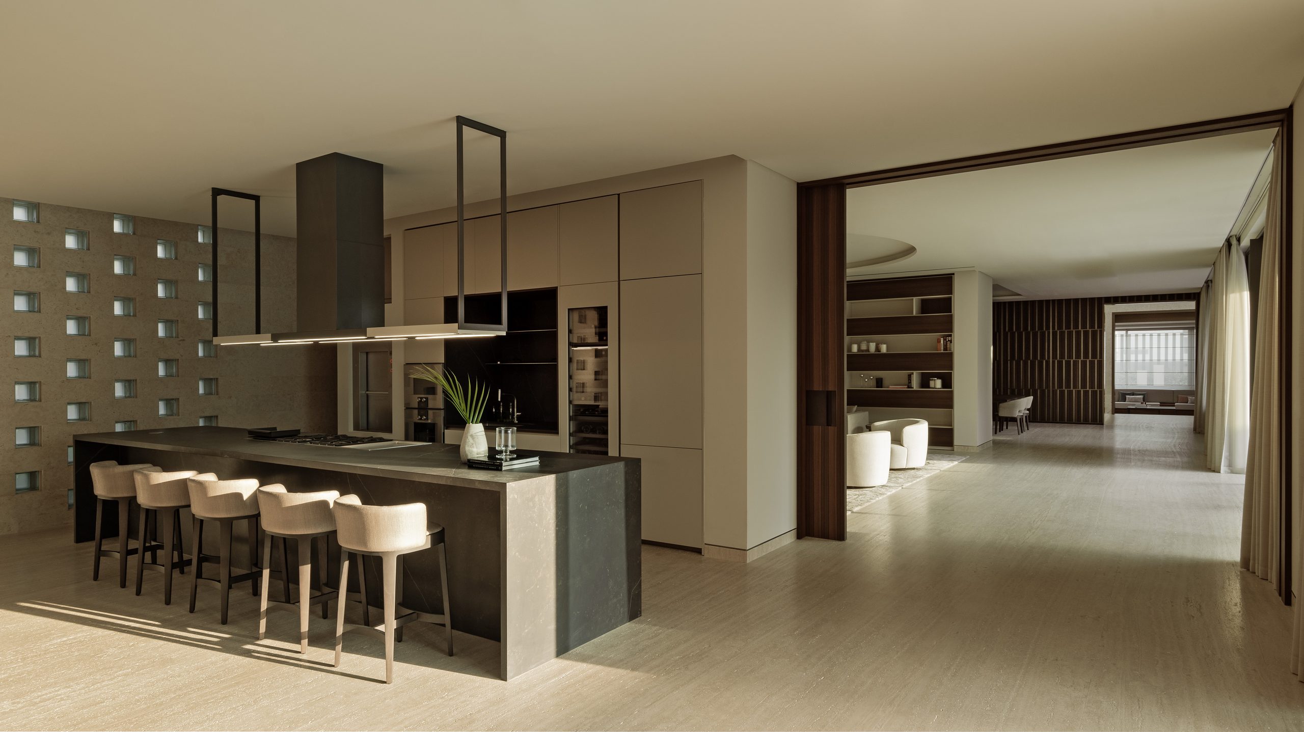 In communication and response to the unique and extreme desert conditions of the UAE, the Dubai Residence provides a moment of quiet repose, sheltered from the intensity of the local elements.