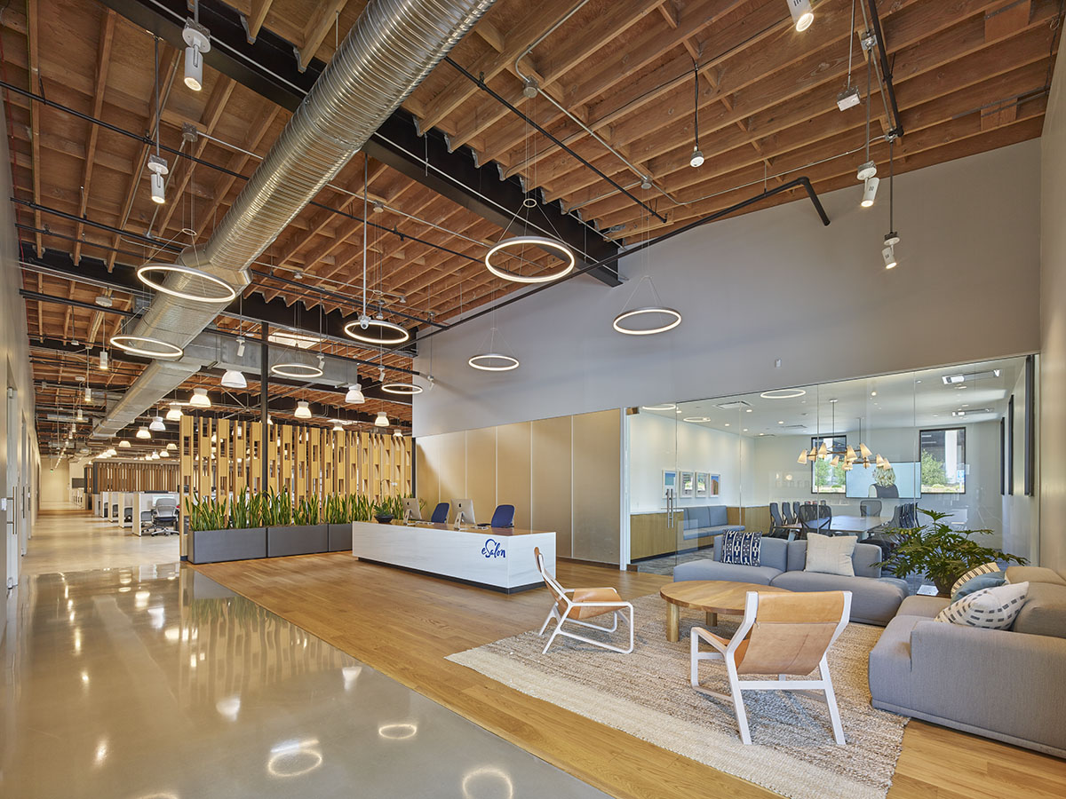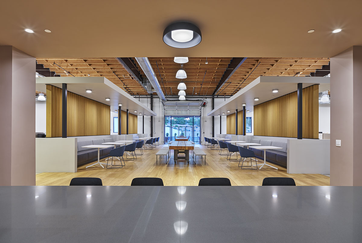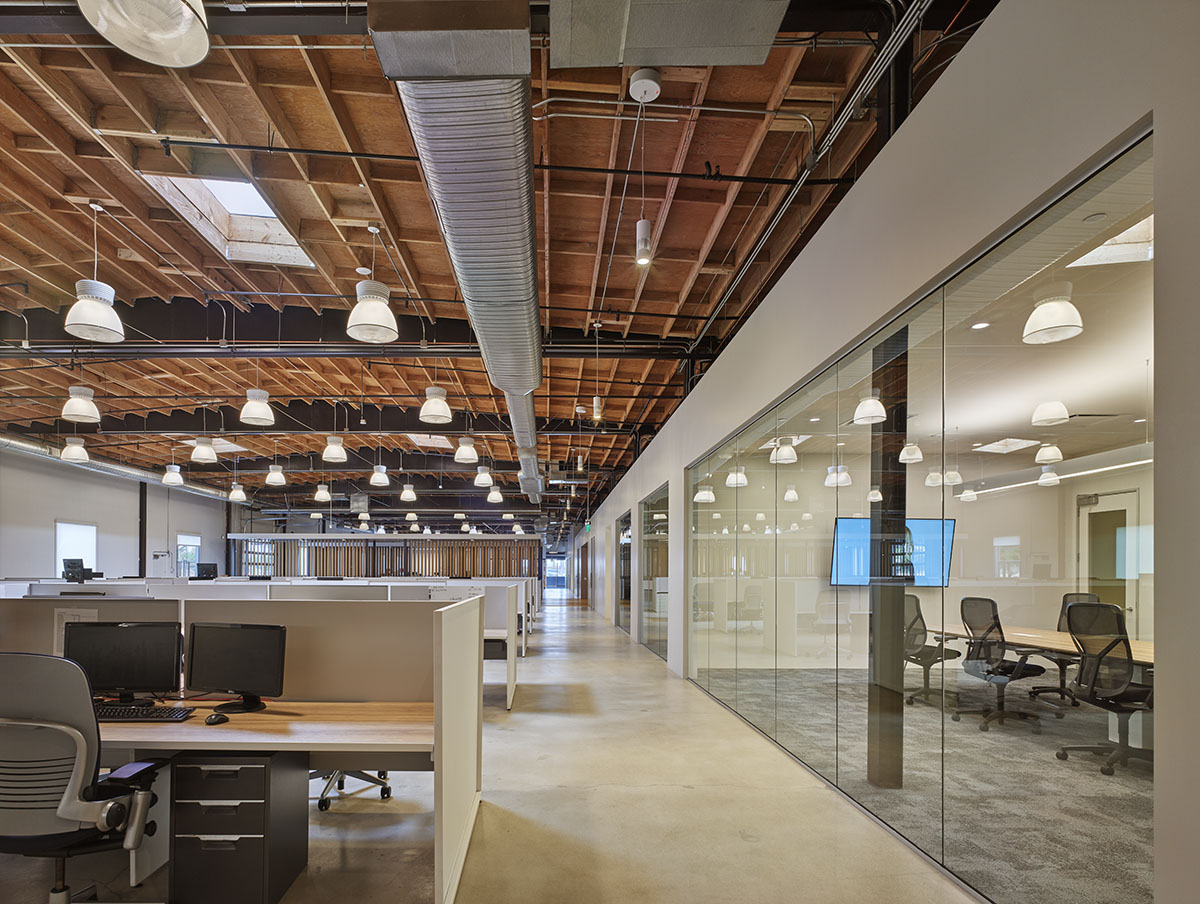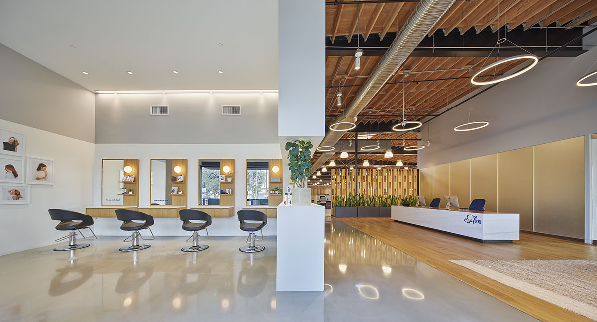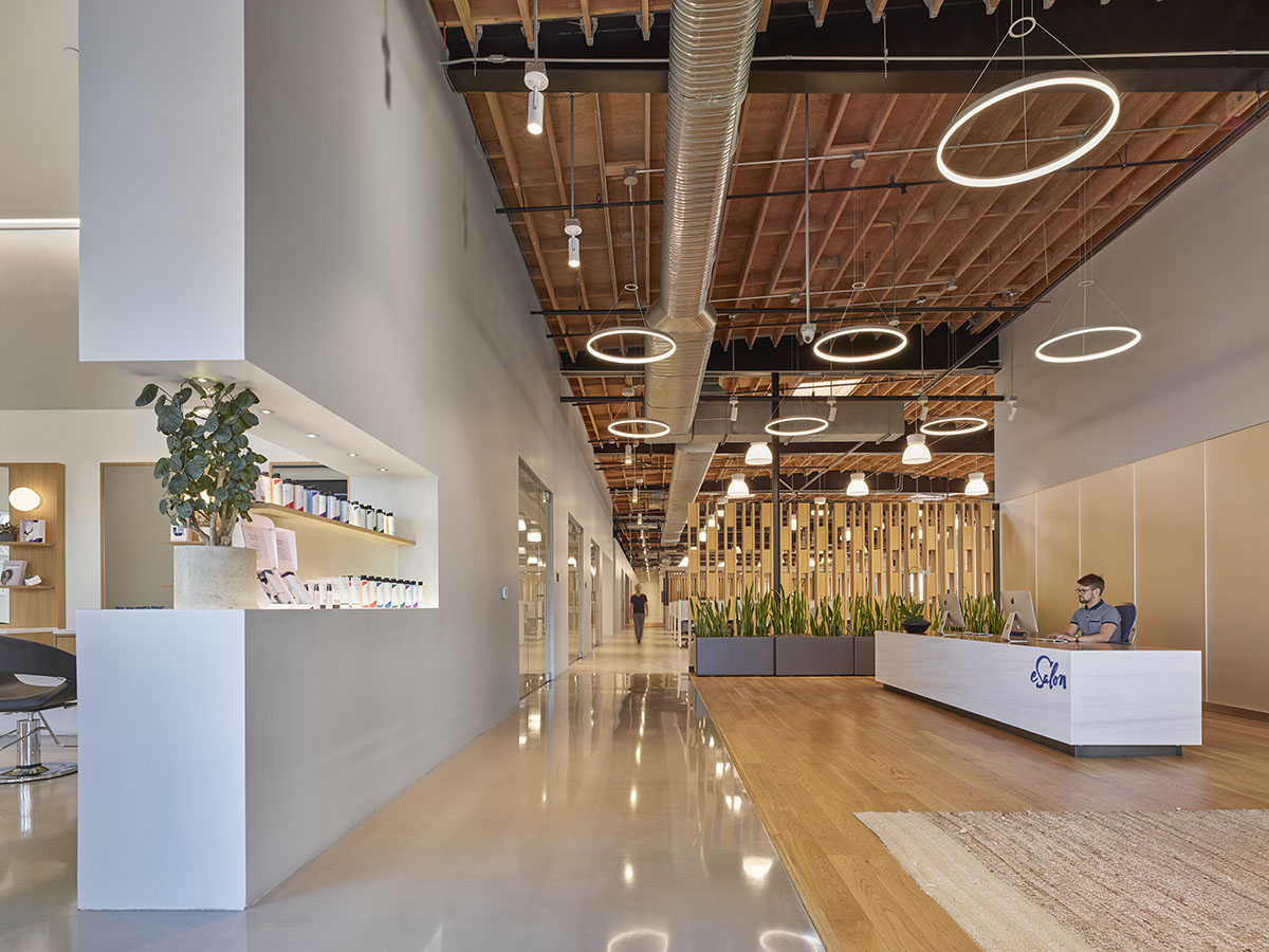The design resolved eSalon’s program with a clear spatial orientation, maintaining the connective tissue between the different departments. The layout of the office is informed by eSalon’s inherent value of creating a cohesive working environment for the office, manufacturing, and salon team-members alike, providing equal access to communal amenities.