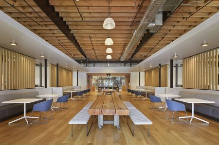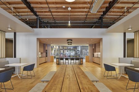 The multifaceted needs enabled a unique approach to formalizing the project, resulting in a cohesive space informed by the character of the building’s past and designed for future collaboration. The design for eSalon resulted in a diverse base of operations, allowing the company to grow while keeping true to their employee principals and founding values.