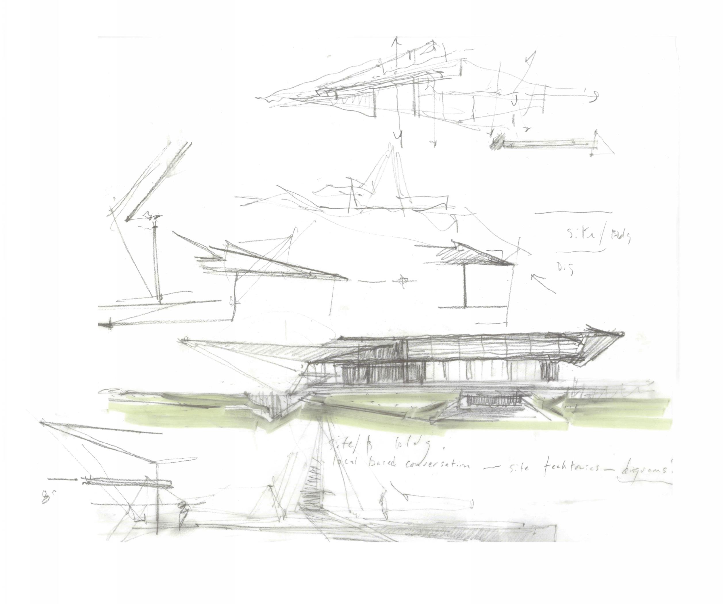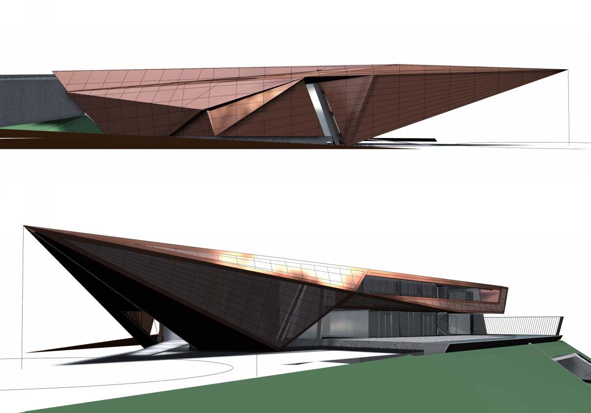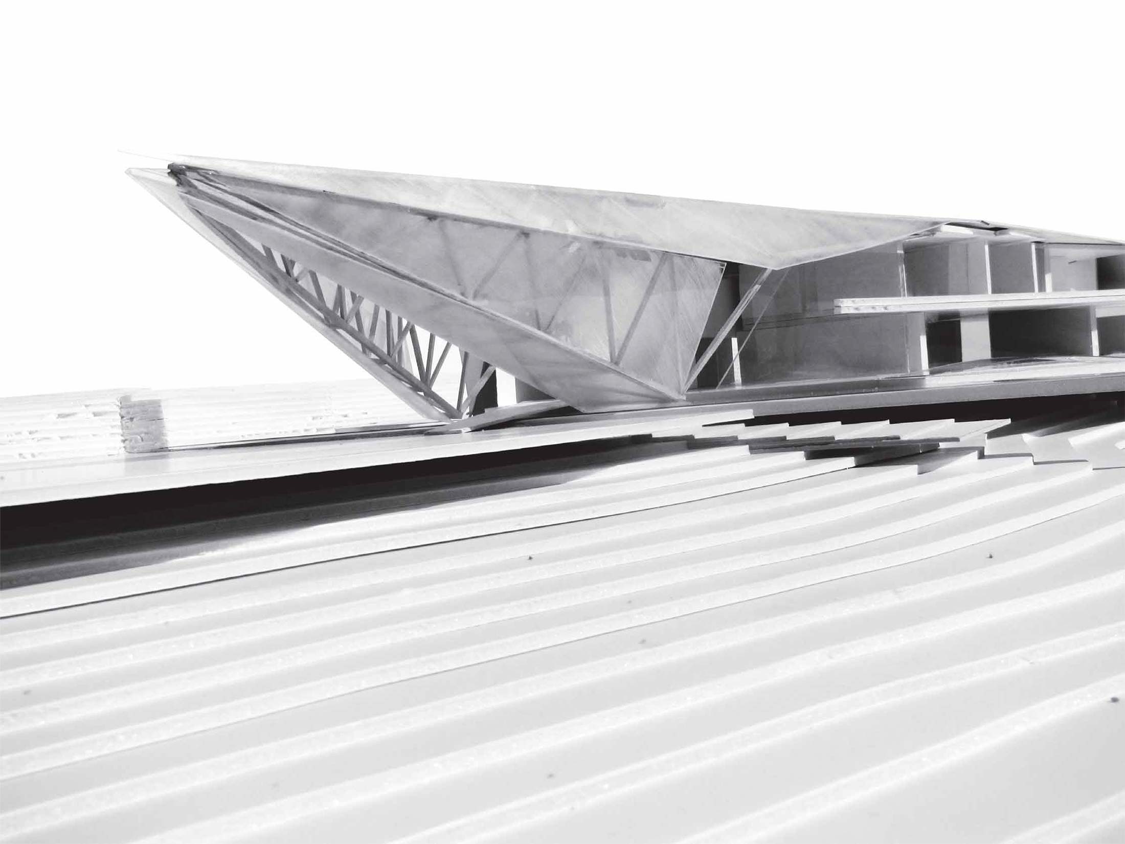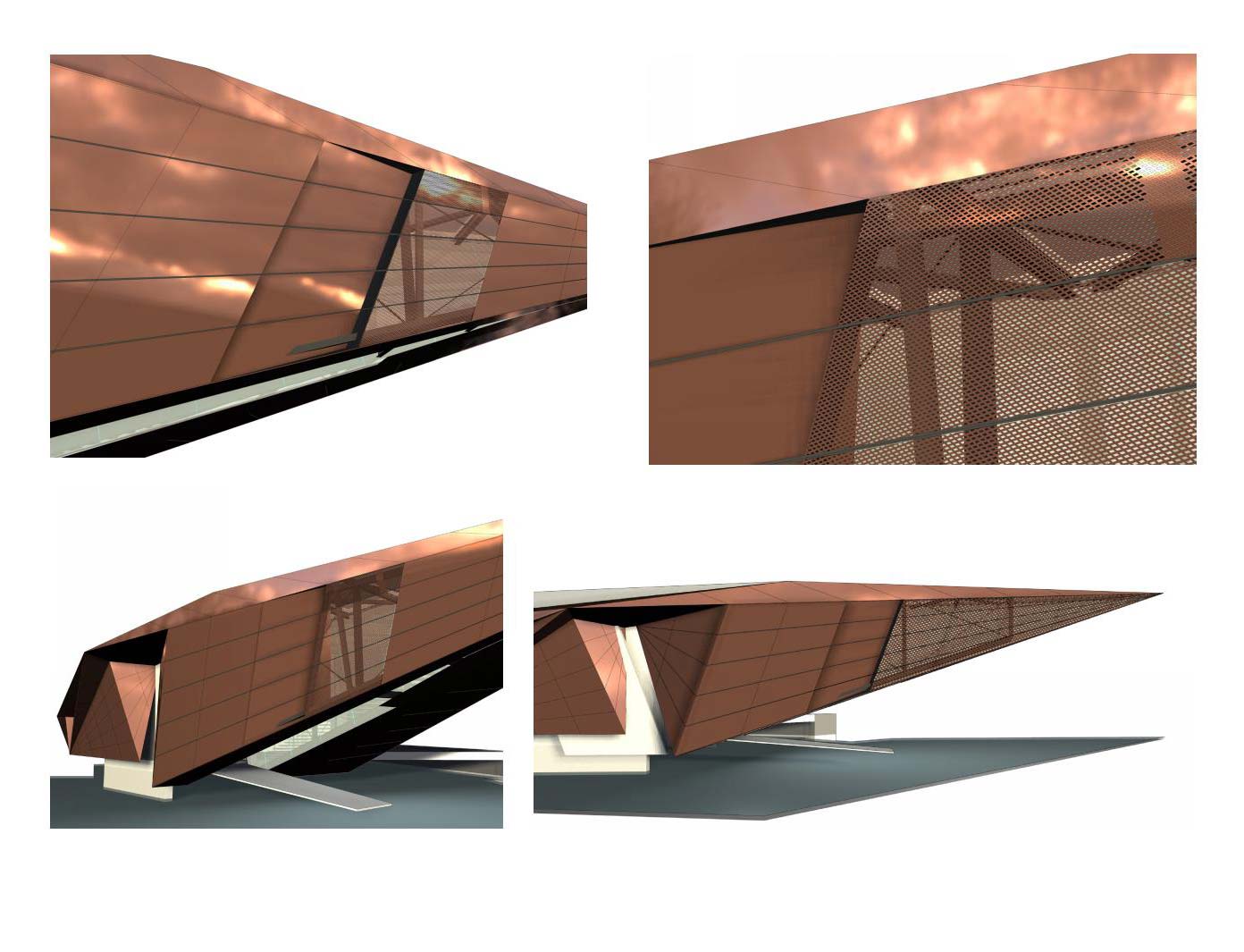 SD conceived the building as a series of folded “skins” that protected and shielded the building from the natural elements. The skin includes photo-voltaic panels and shades the building vision glass.
