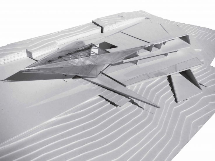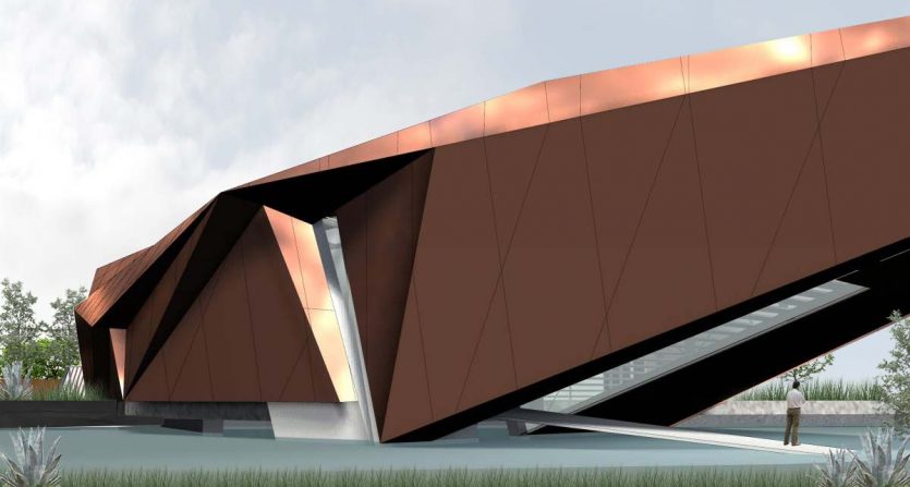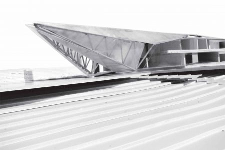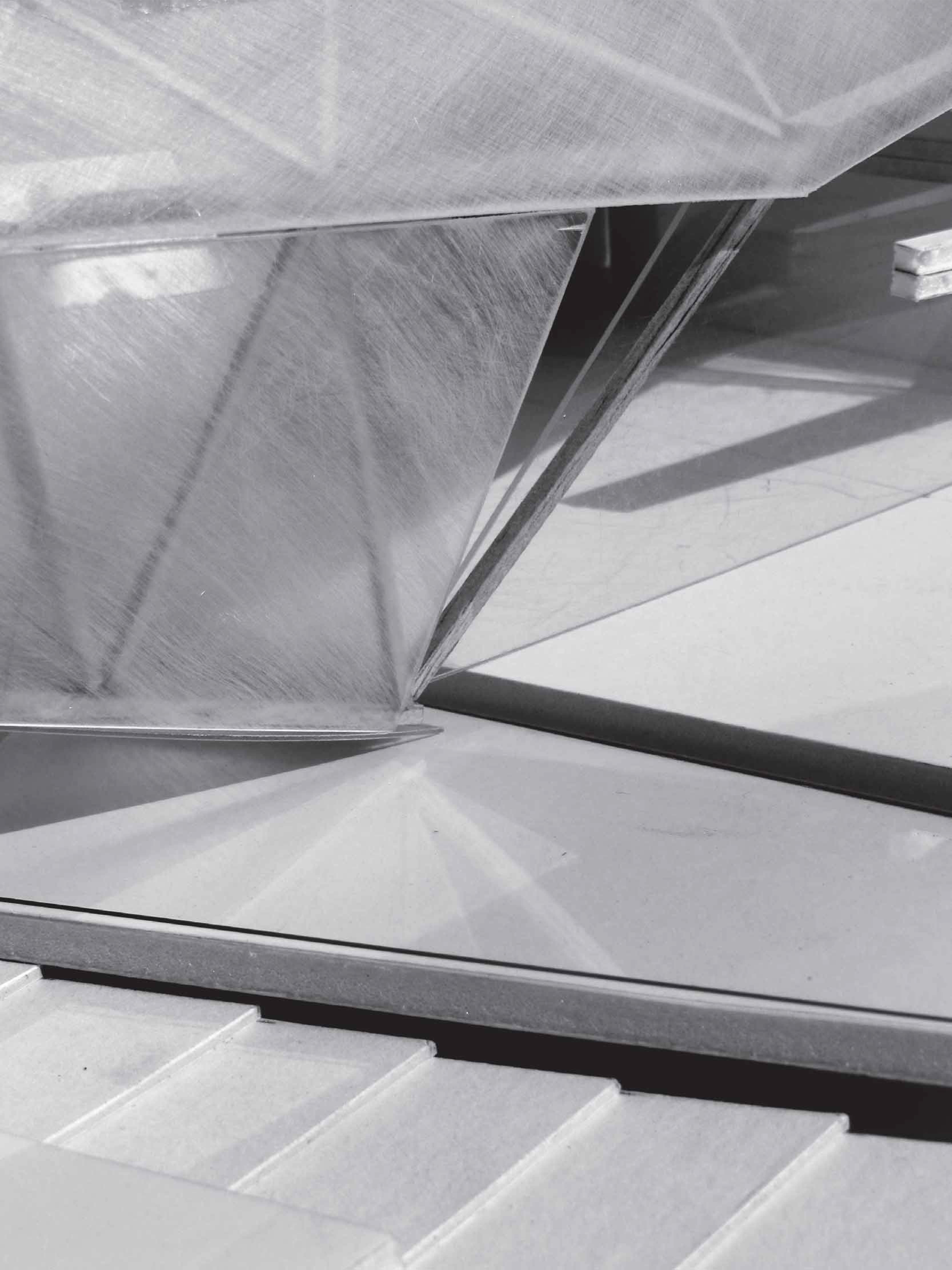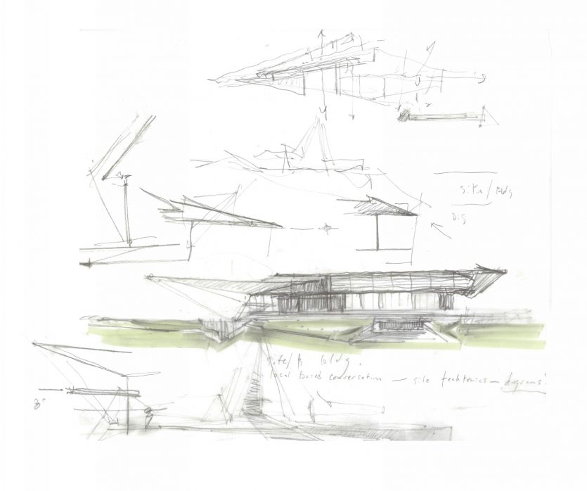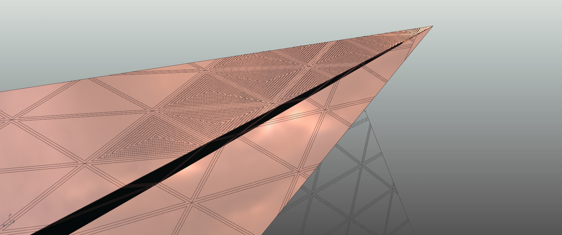 SD conceived the building as a series of folded “skins” that protected and shielded the building from the natural elements. The skin includes photo-voltaic panels and shades the building vision glass.