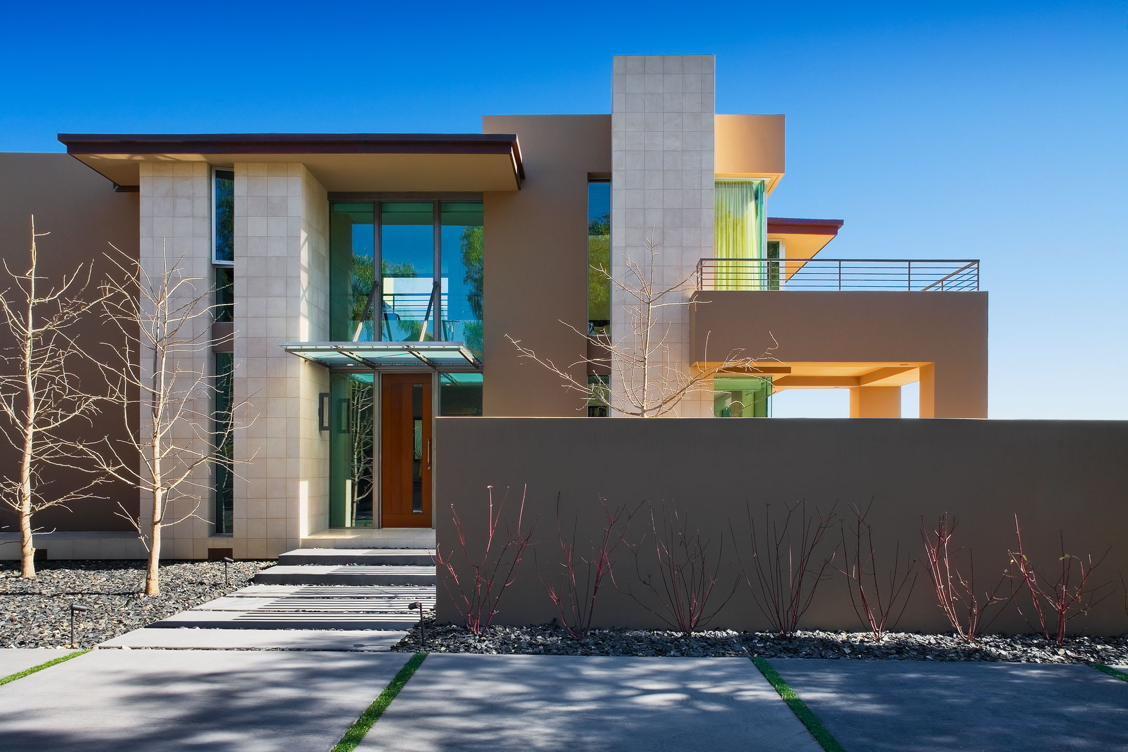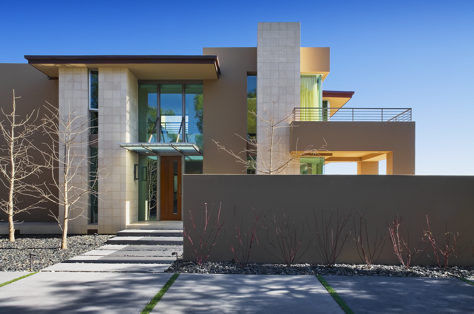 This relatively small house has all of the elements of a 5,000- or 6,000-square-foot house in a tidy, 3,200-square-foot package. The three-level home and two-car garage include open living/dining area, kitchen, master bedroom and bath, guest bedroom and bath, home gym, powder room, two home offices with office bath, outdoor dining area, outdoor lounge areas, lap pool, and 1,400 square feet of lower-level storage.