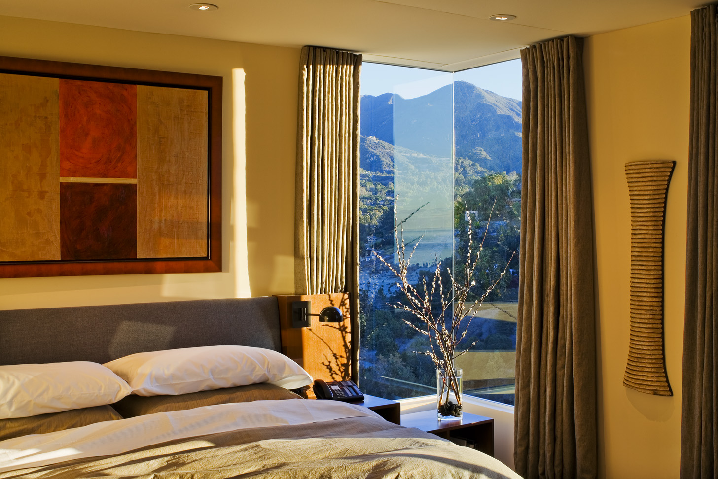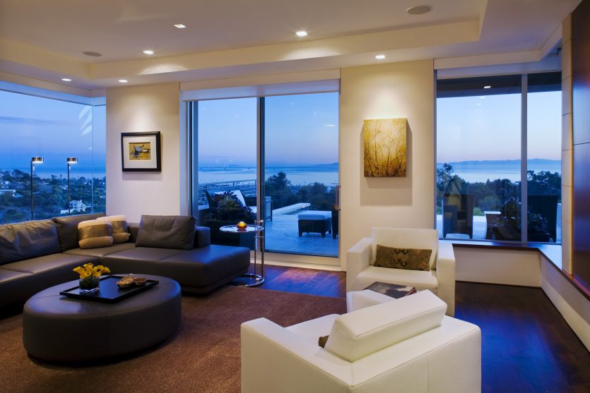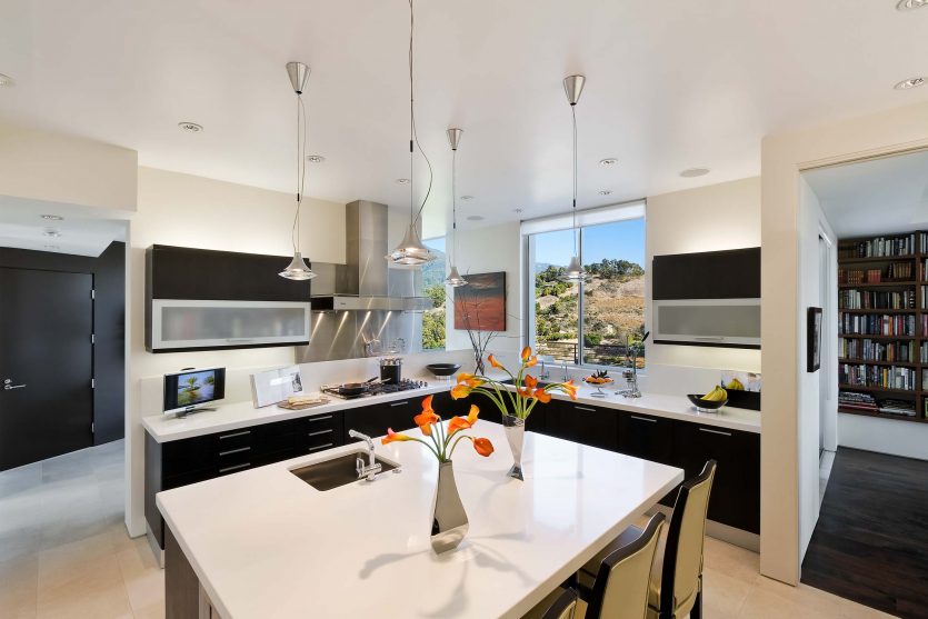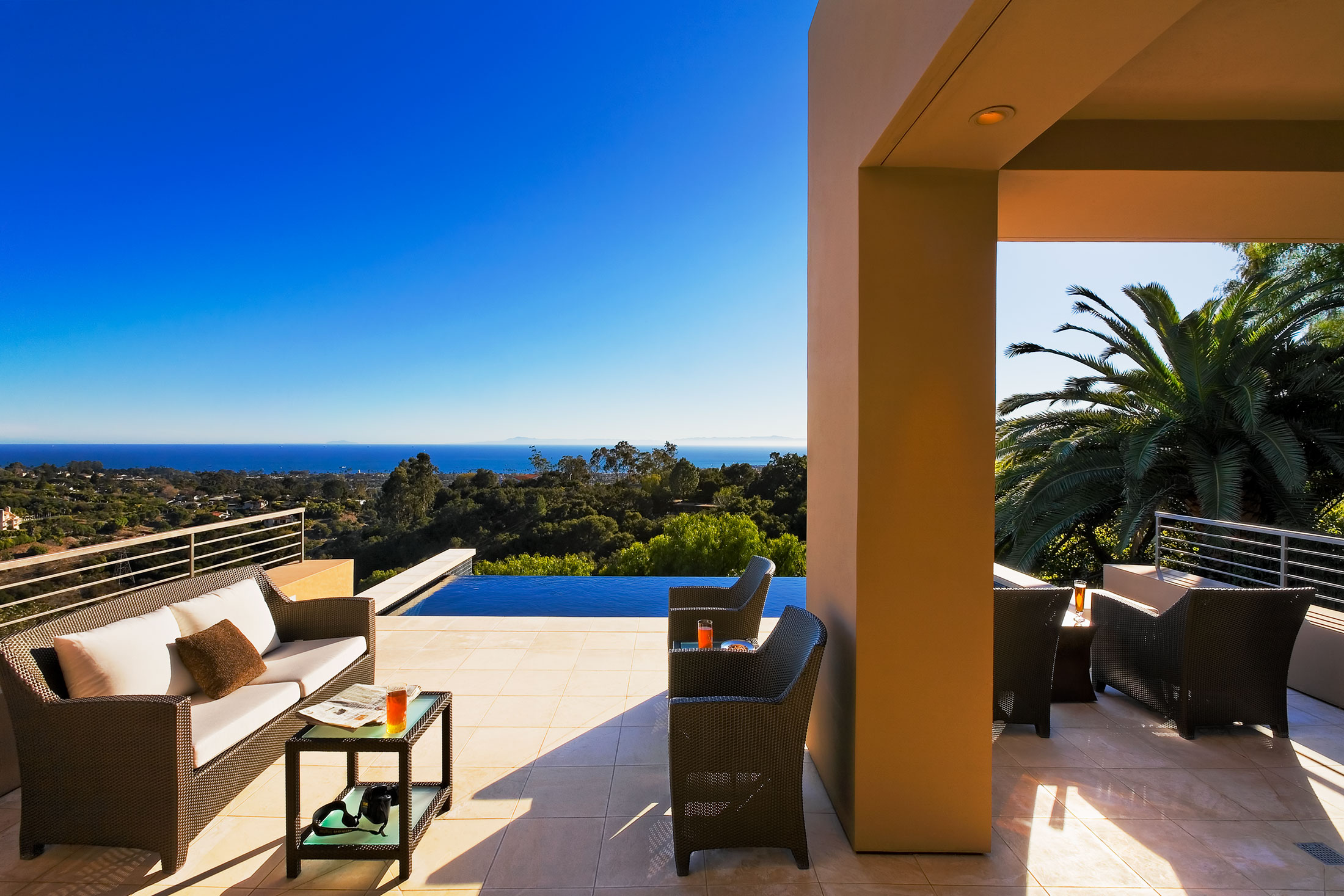 Situated on a ridge in Santa Barbara site known as “The Riviera,” the residence commands a 270-degree view of the Pacific Ocean, a dramatic canyon, and the Santa Ynez mountains.