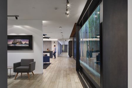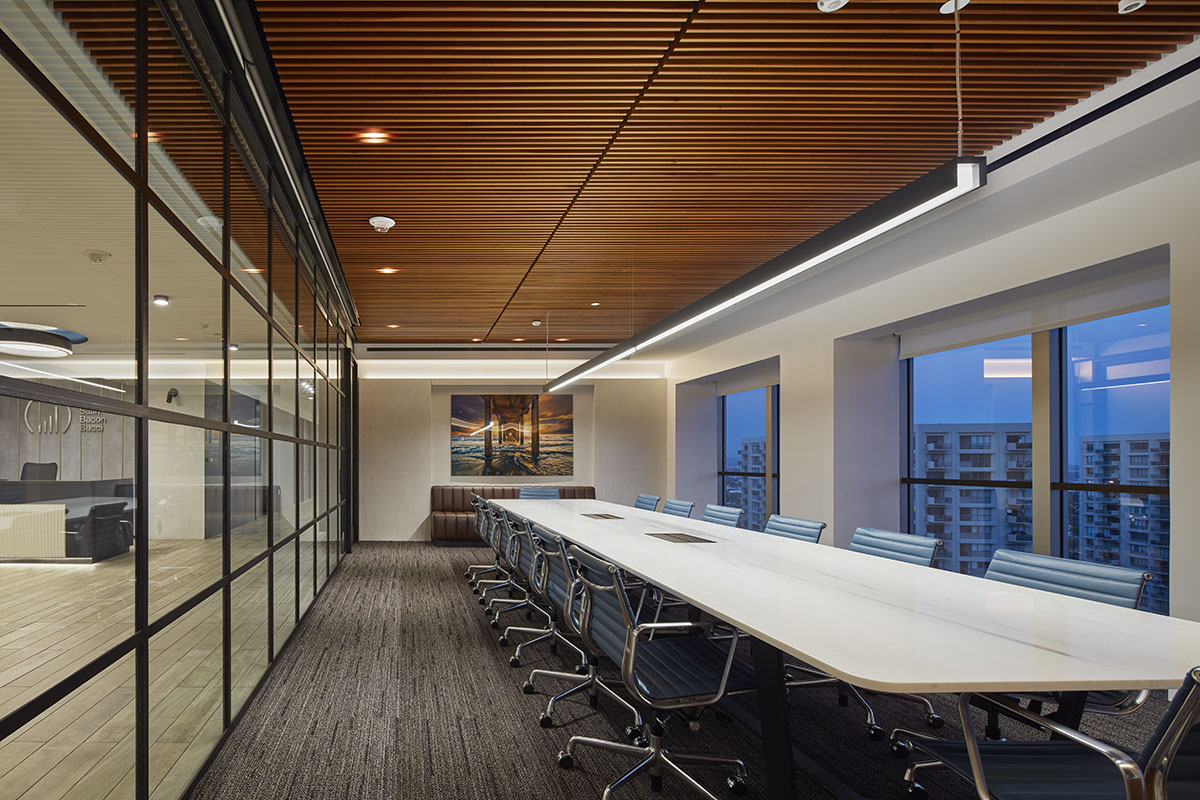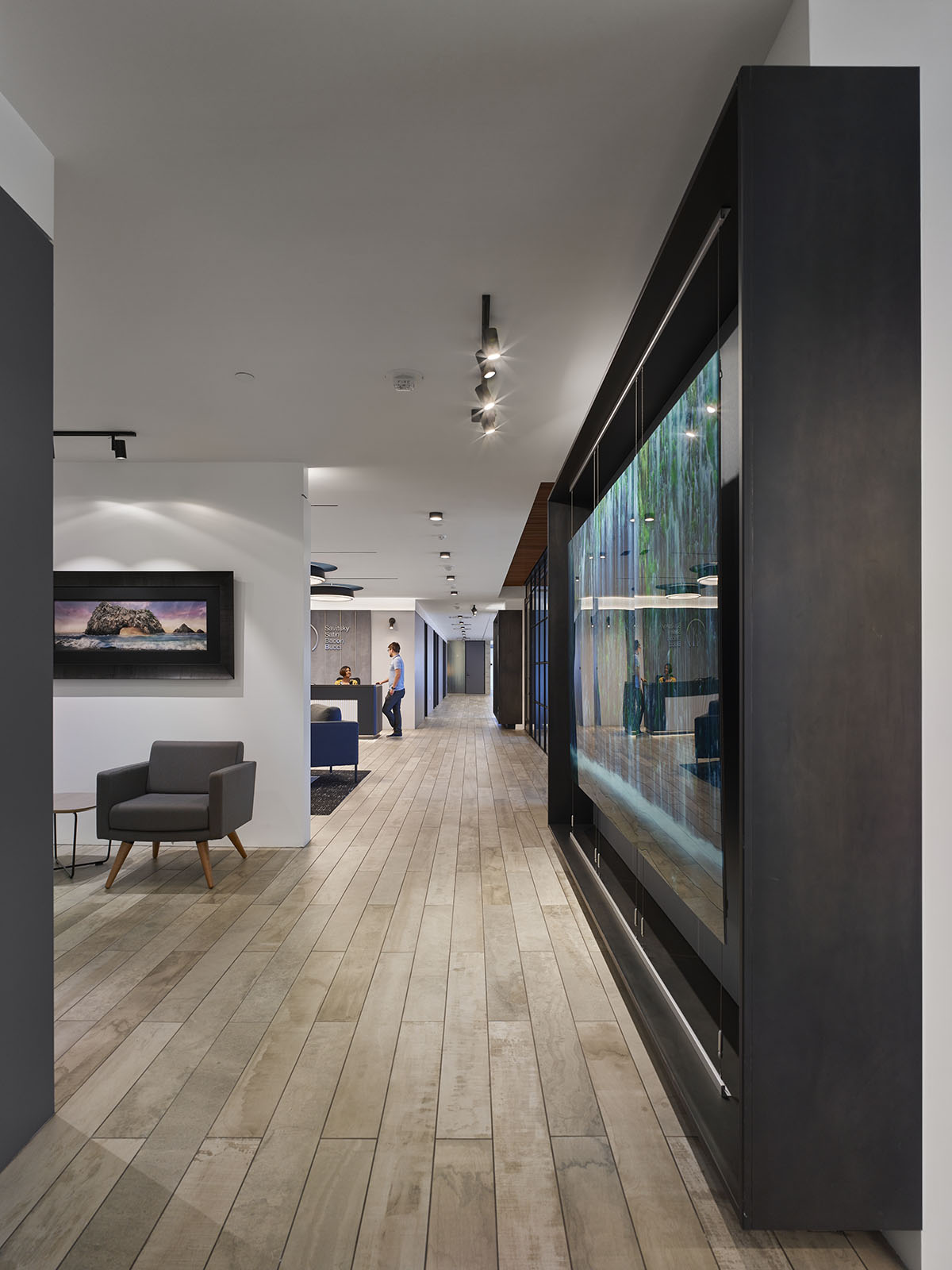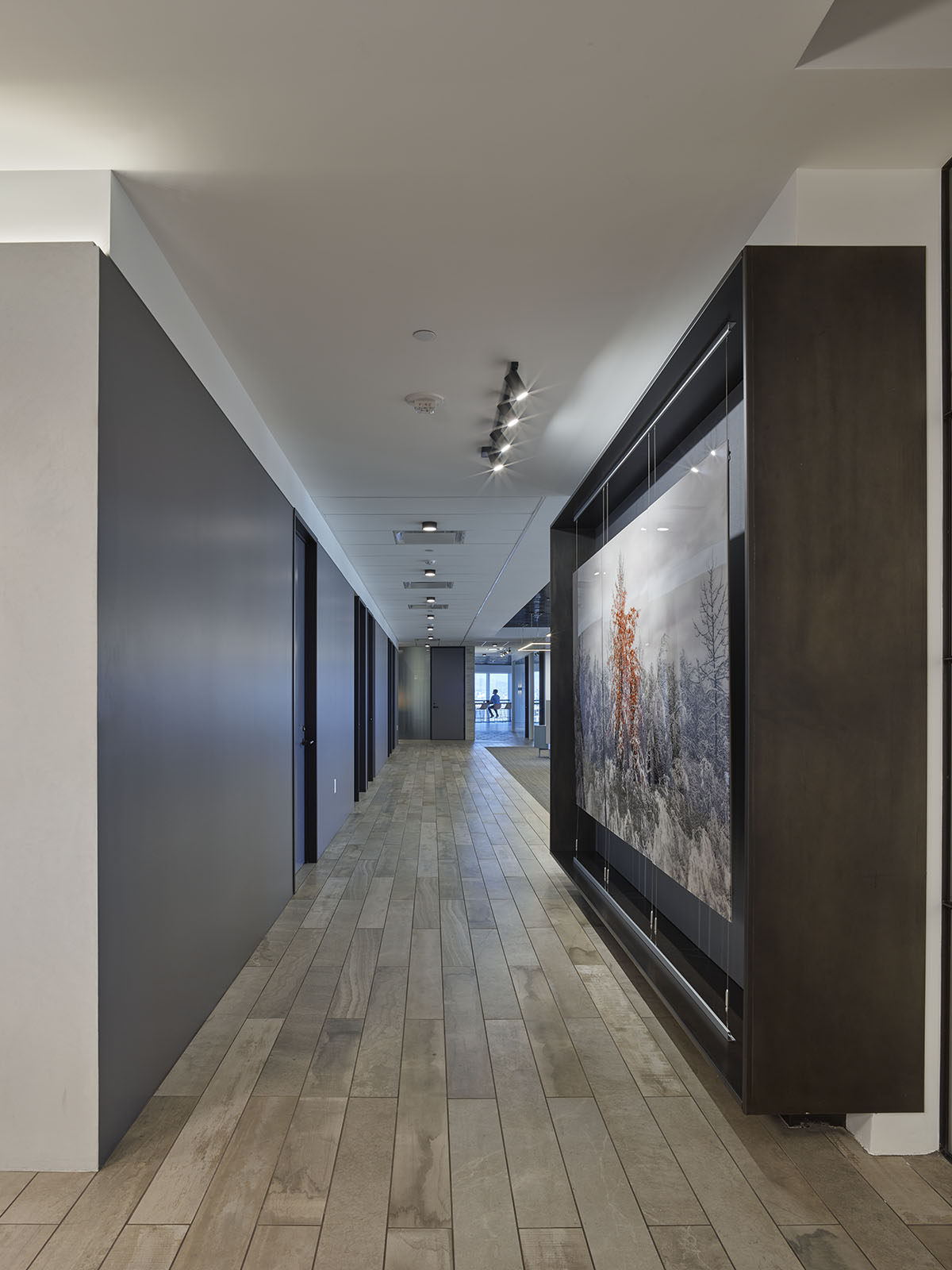 A commercial interior project for the client, Savitsky Satin Bacon & Bucci (SSBB), a privately-held financial advisement company with a proud history serving sports and media celebrities. In their need to expand operations, the opportunity arose to move into the iconic Twin Towers in Century City, which is where SSBB had initially opened its first office. The new office focuses on their company’s origins while capturing future growth and modern technologies to capture this unique history and commitment to their clients.
