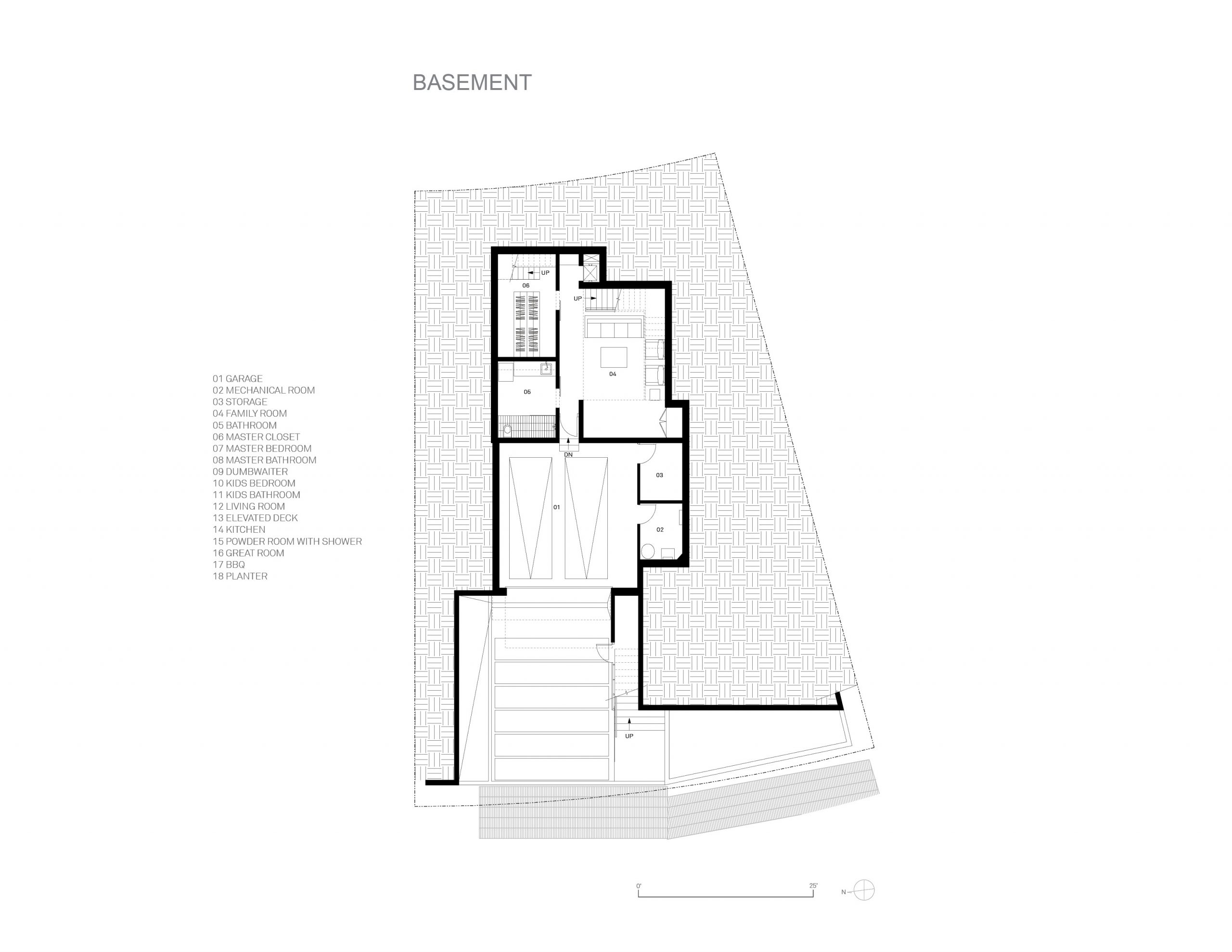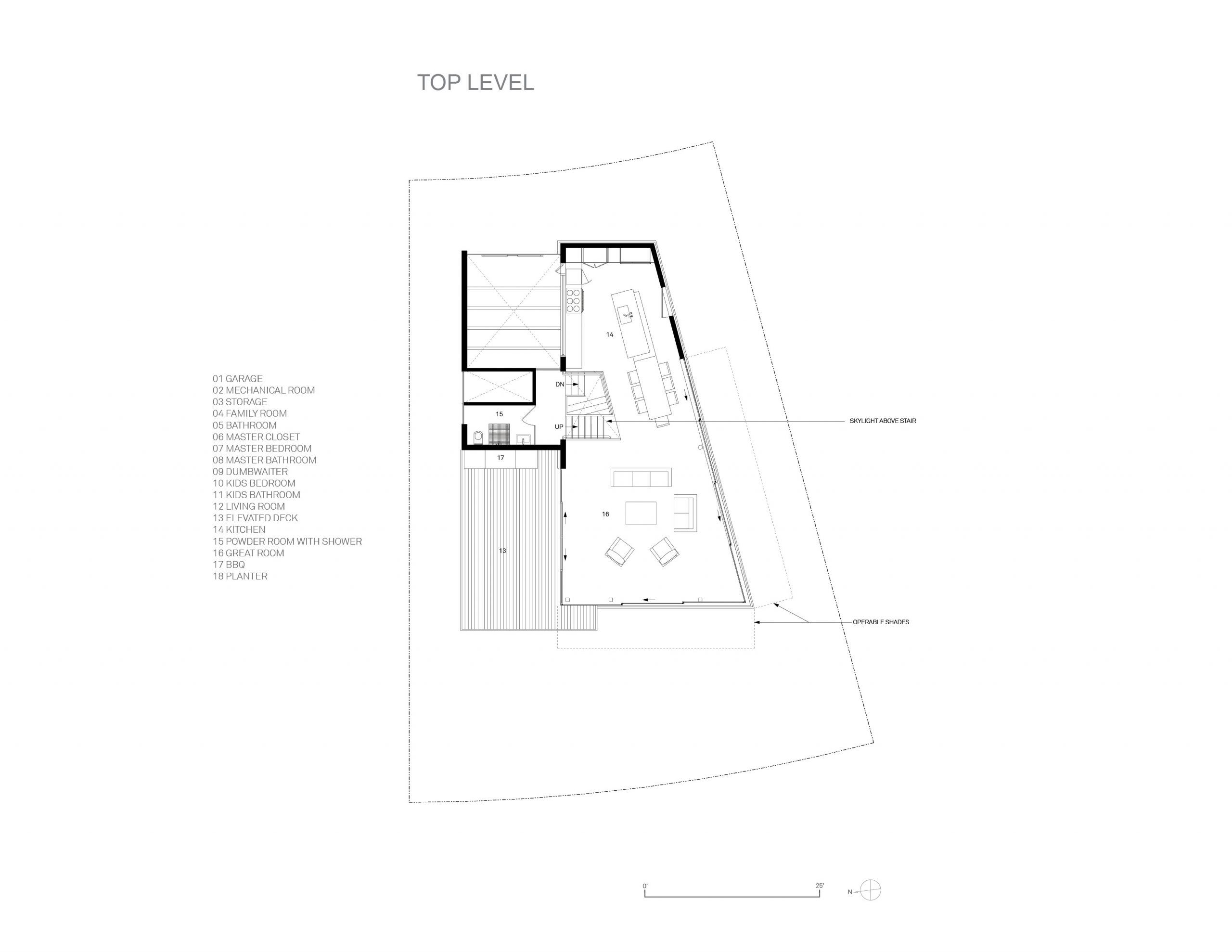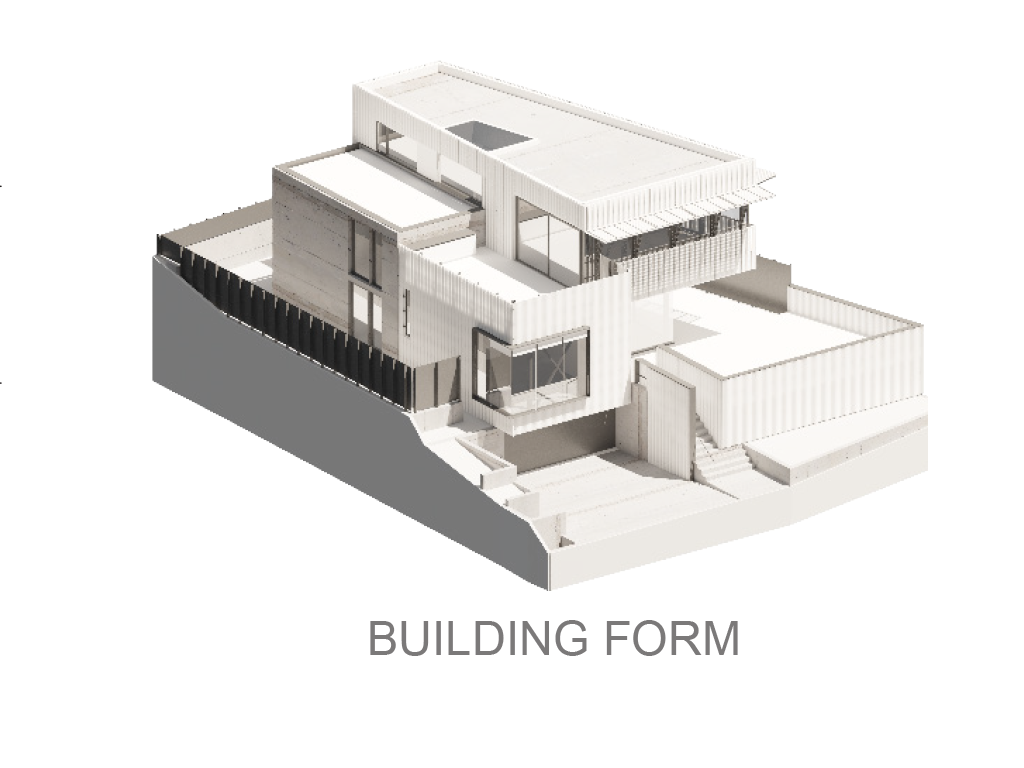 Fully utilizing the site, the main living areas sits on the top 3rd floor with panoramic Pacific Ocean views looking south and west. The bedrooms sit on the 2nd floor and the service areas like garage and laundry bury into the ground floor.