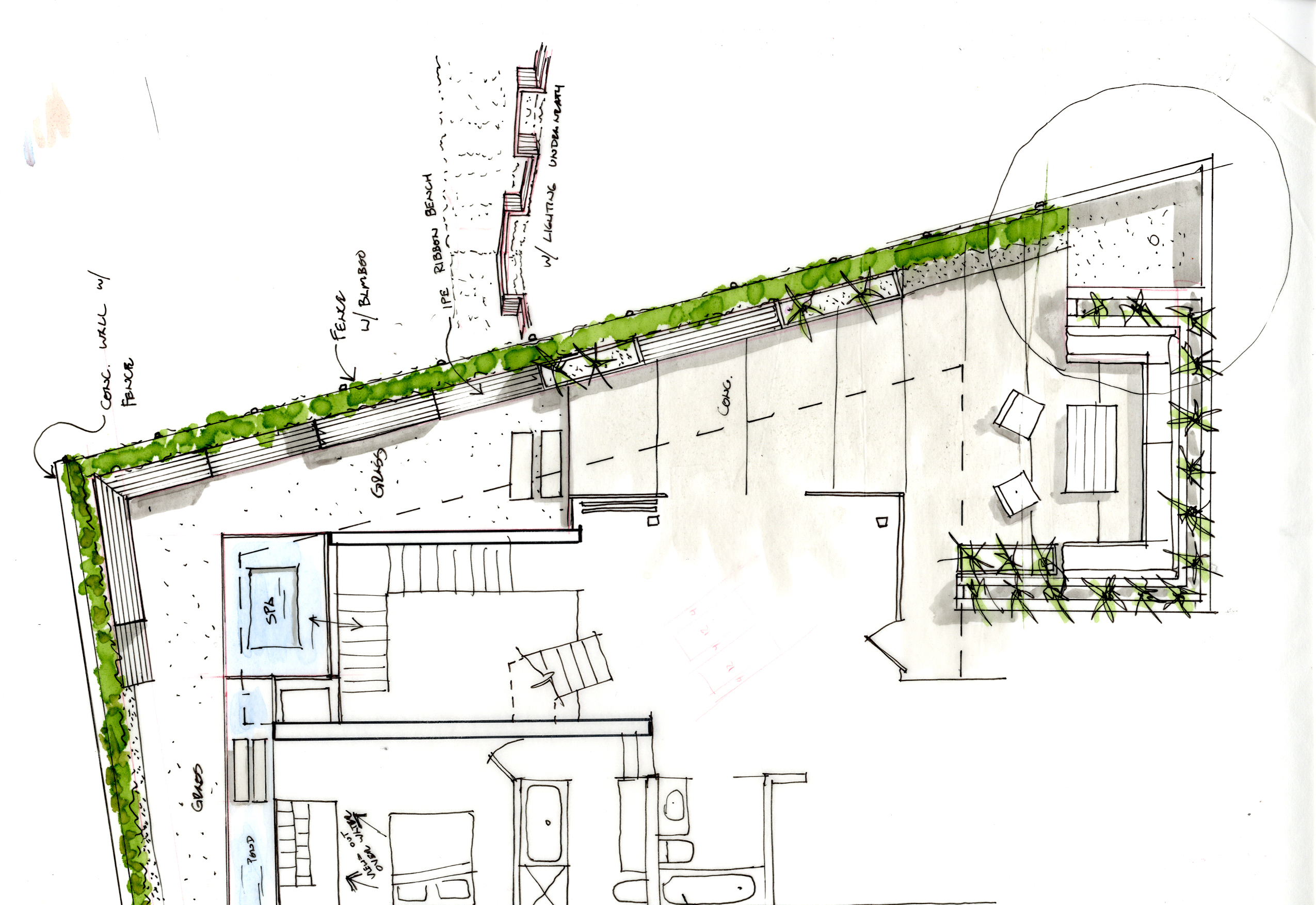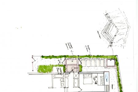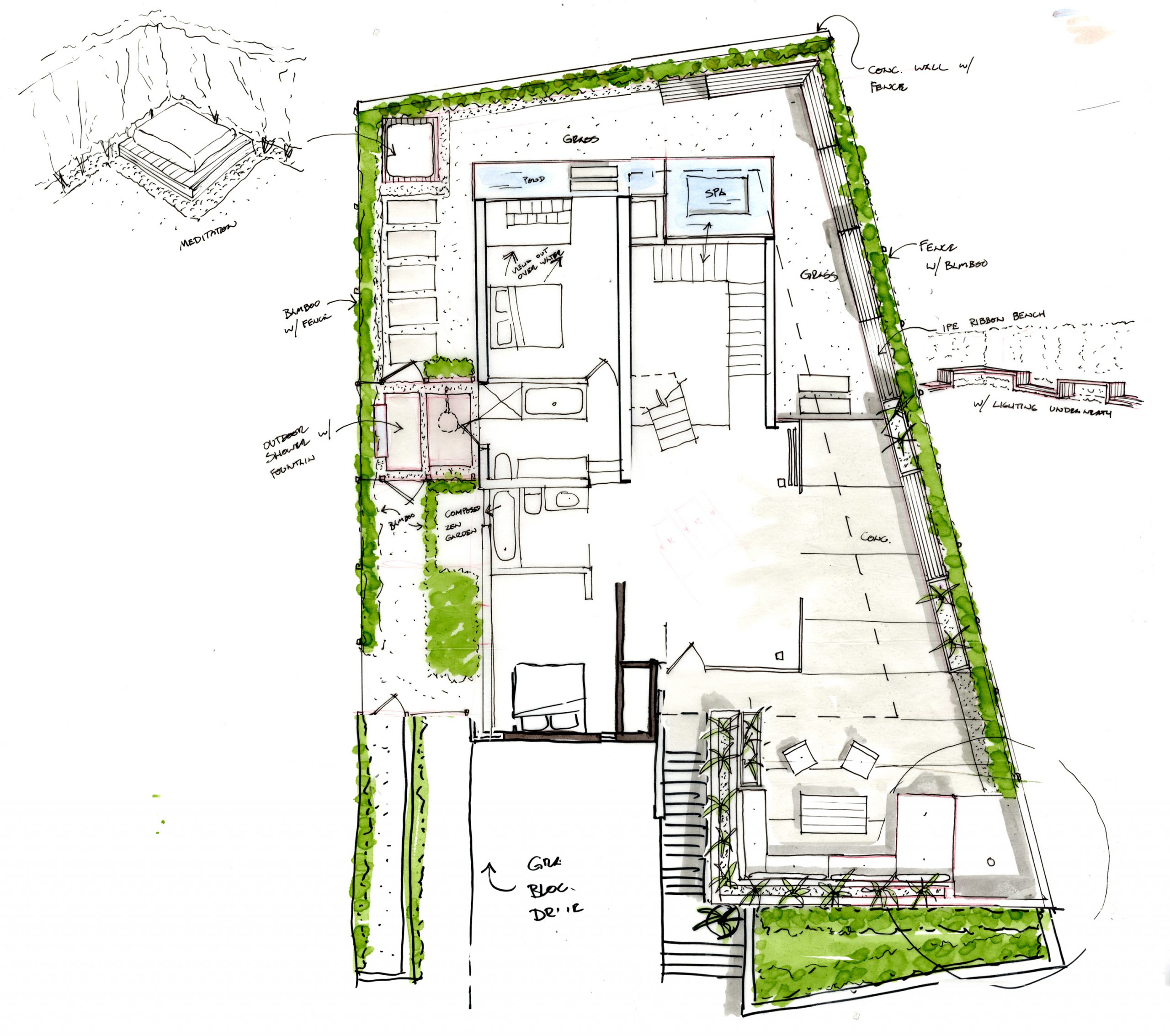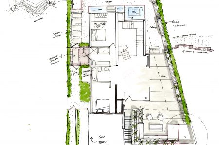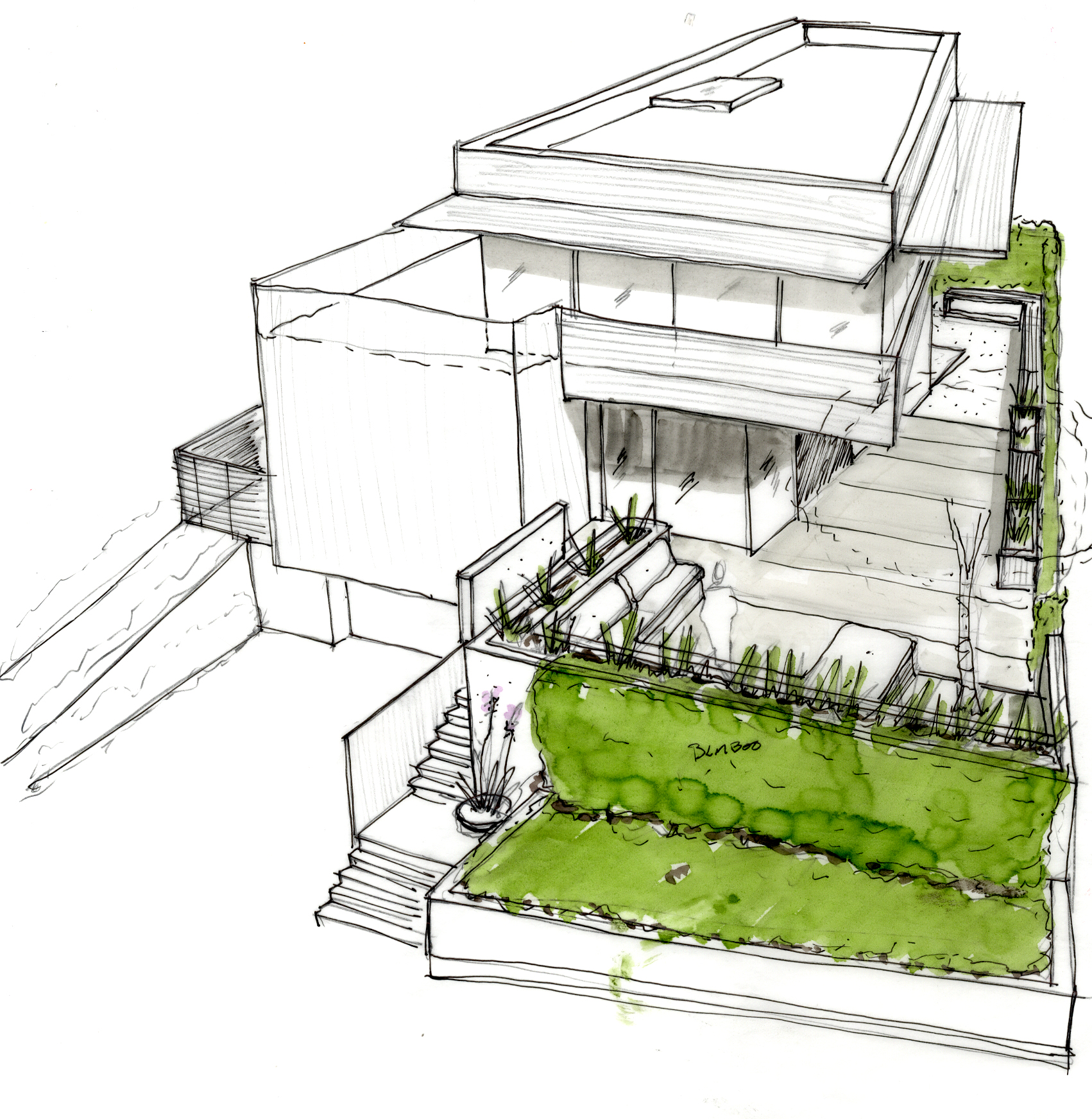 Fully utilizing the site, the main living areas sits on the top 3rd floor with panoramic Pacific Ocean views looking south and west. The bedrooms sit on the 2nd floor and the service areas like garage and laundry bury into the ground floor.