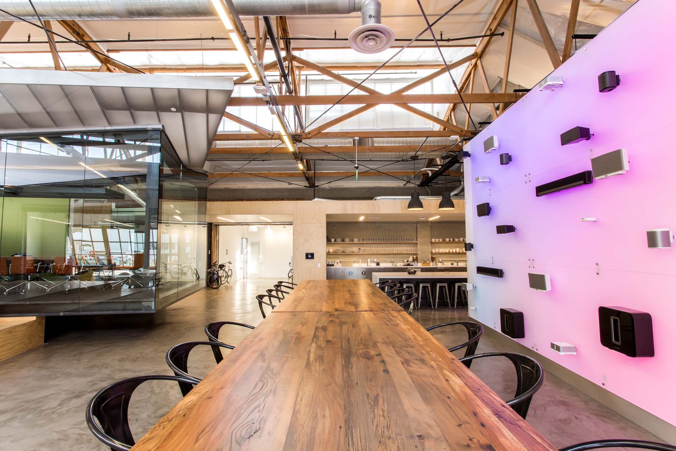 Sonos is a wireless hi-fi sound-system manufacturer that believes in changing the way people experience music. At the core of the brand’s culture is to amplify – to shift expectations and redefine realities, which is why they chose to have their headquarters in Santa Barbara over Silicon Valley. Sonos decided to occupy a series of commercial retail warehouses at the center of downtown Santa Barbara. All buildings are within walking distance to nearby shops and restaurants and they give their employees incentives to bike to work. The goal was to create an urban campus that reflects the brand’s world and is a positive influence downtown.