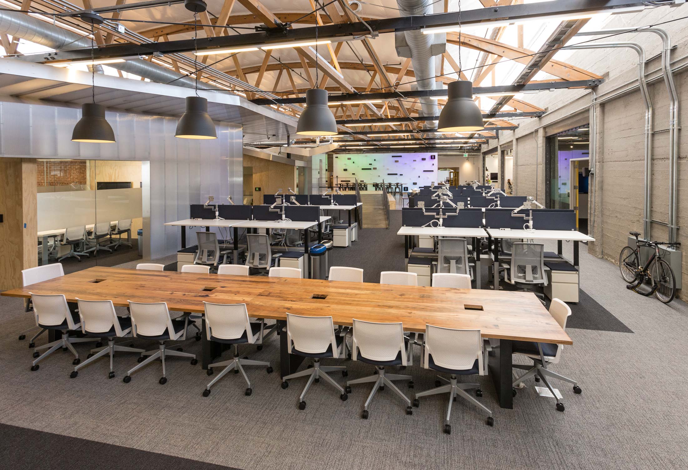 Sonos’ main headquarters at 614 Chapala Street occupies 28,000 square feet of a former car dealership and houses executive management, marketing, human resources, finance, IT, and software development teams. In order to amplify creativity, communication, and teamwork we implemented an open floor plan with maximum natural lighting. Exterior patios take advantage of the Southern California indoor/outdoor lifestyle and create impromptu meeting spaces. Programmatic elements include club lounges, enclosed collaboration spaces, flex desking, experience rooms, and play areas.