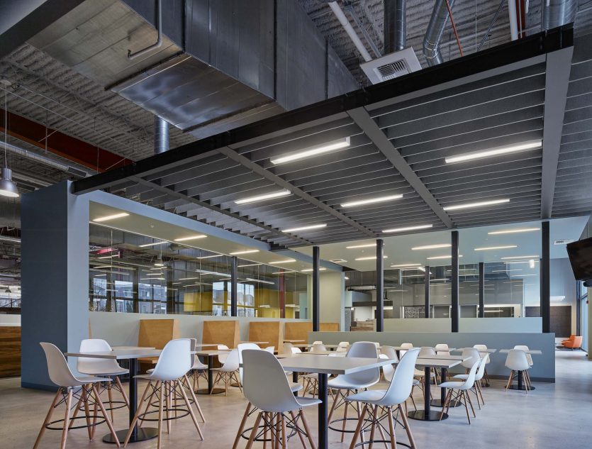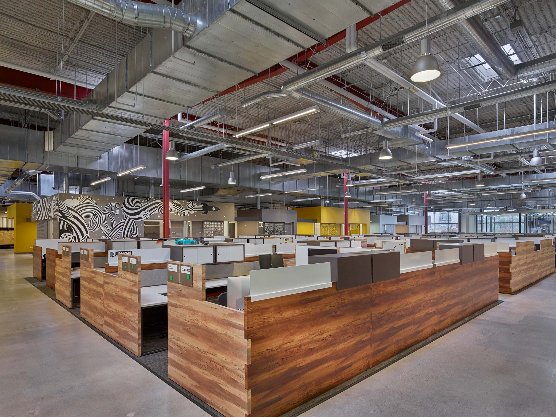 Team One USA is an international advertising agency located in Los Angeles. With the belief that any idea should be remarkable, Team One made the decision to bank on that philosophy when it tapped ShubinDonaldson to design their new environs. Team One was spread amongst four floors of a traditional office building with most staff working in private offices and some in cubicles. Relocating to a former US post office distribution center allowed the almost 400 employees to congregate in approximately 75,000 sf of continuous, single-story space. Encouraging communication and collaboration, the design’s bold gesture removed everyone from private offices and into equally sized custom workstations. Meeting rooms, huddle rooms, war rooms and open work areas supplement the many ways in which the employees interact and function.