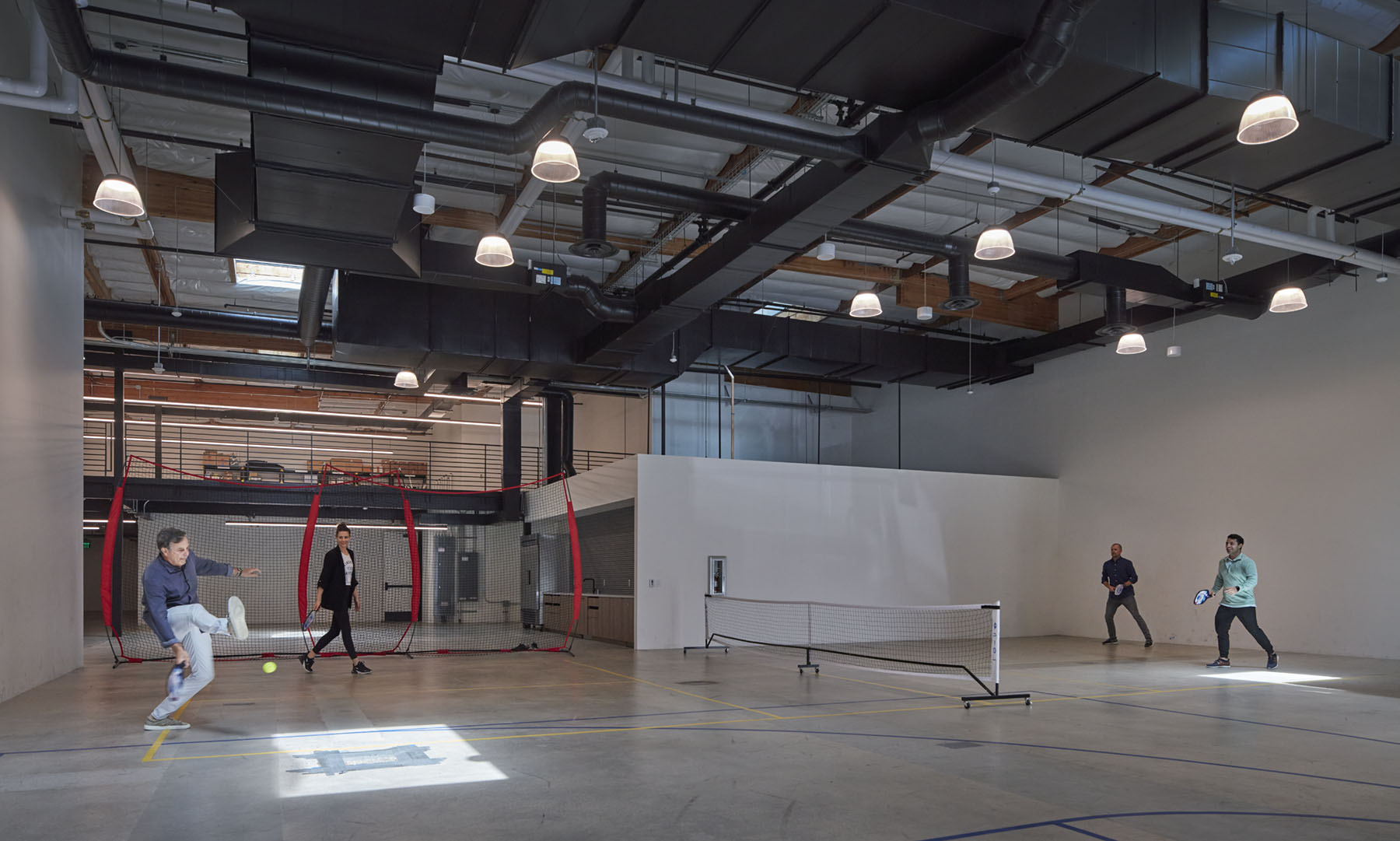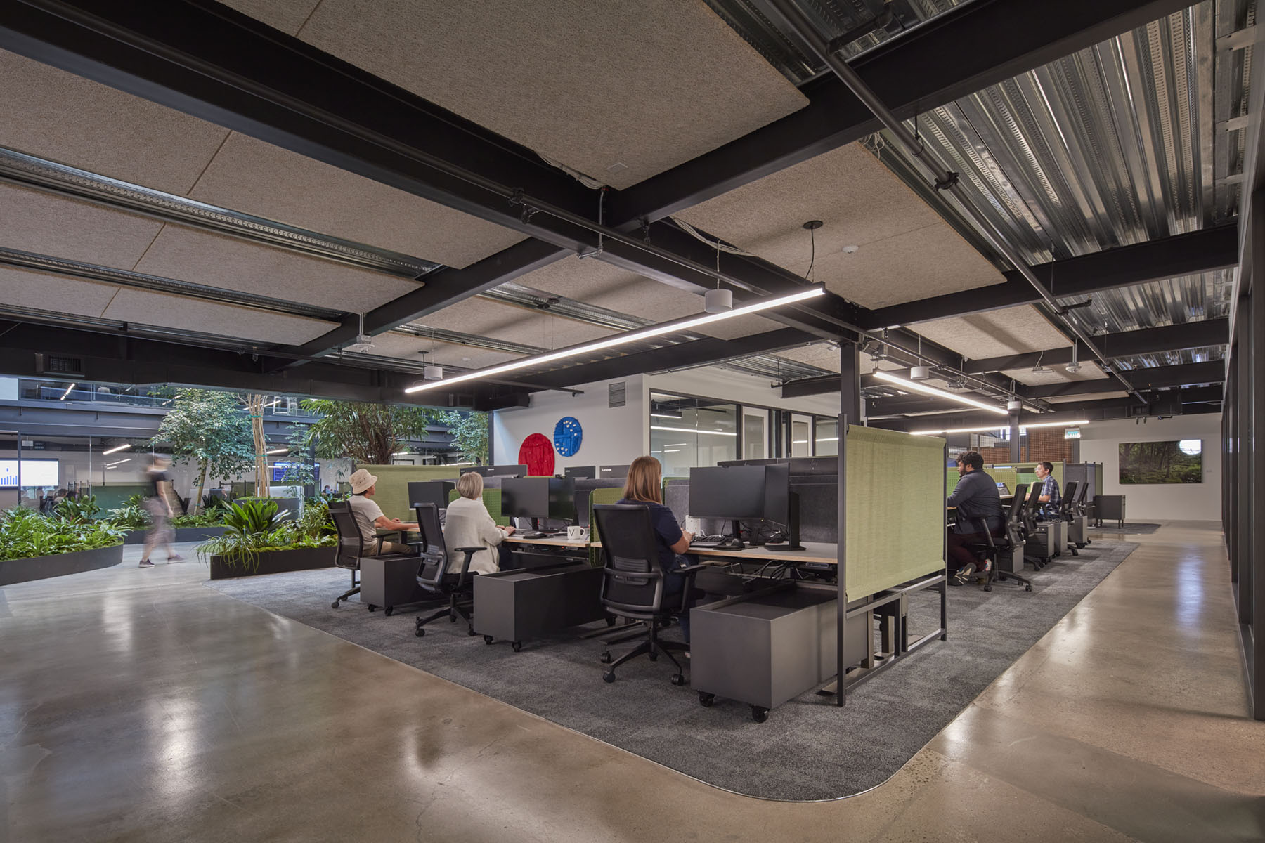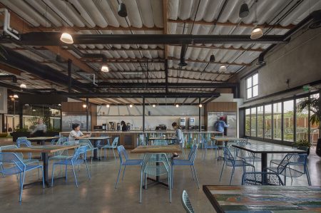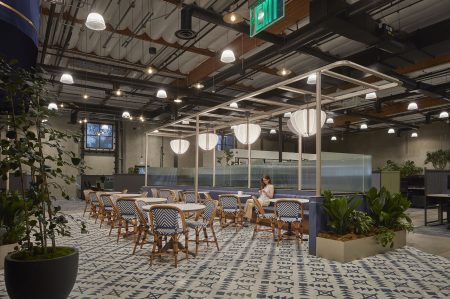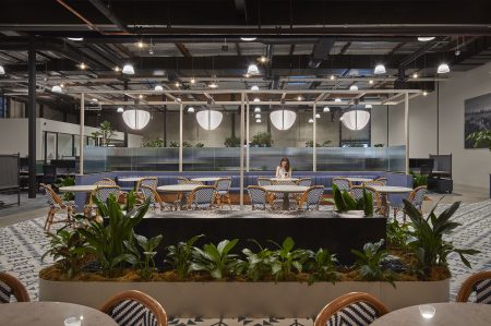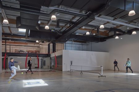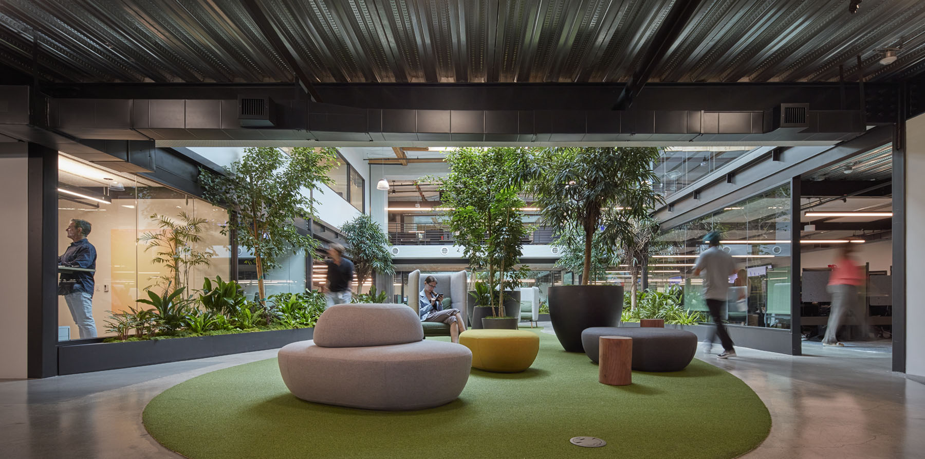 The project’s design is all about transparency. Roof openings flood the space with sunlight, and offices and communal areas are adorned with glass walls, bringing a new level of company transparency into the mix. When you seek a breath of fresh air, collaborative spaces embrace biophilic design, offering a dash of domestic comfort and a park-like indoor-outdoor recreational experience.