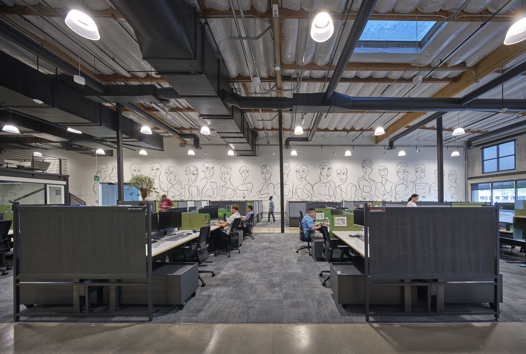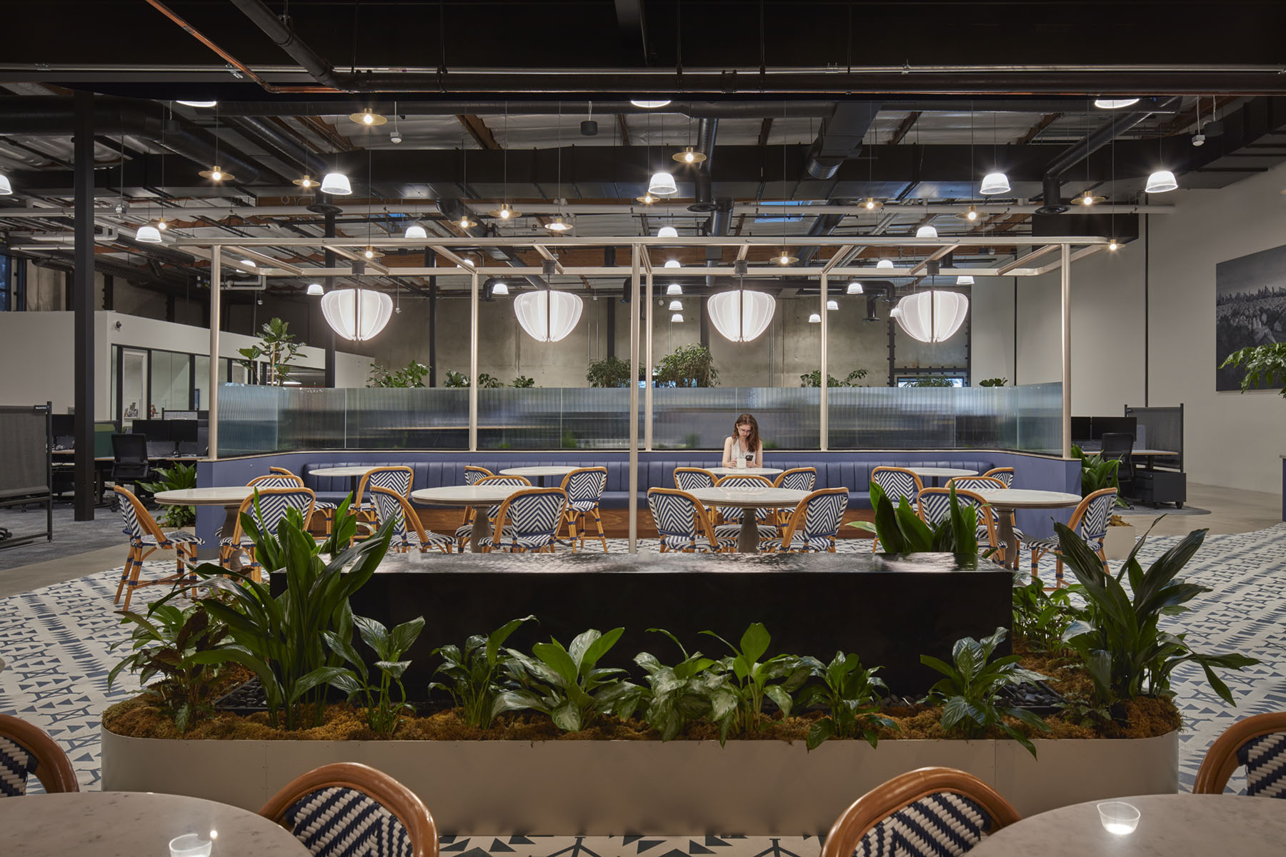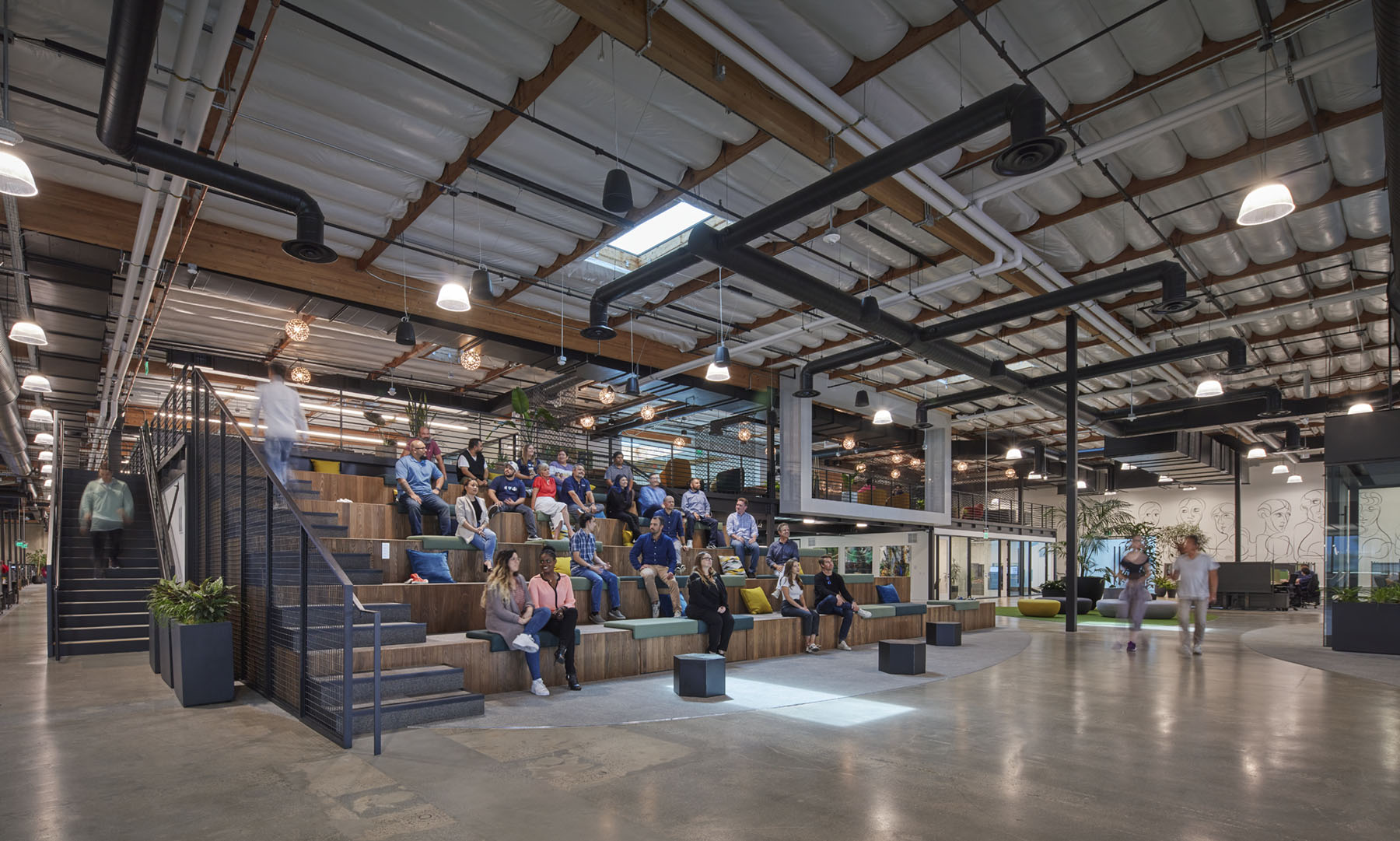 Enter Tricon, a project spanning 66k square feet, tailored for a home rental company with a heart. This transformation turned a run-of-the-mill office park tilt-up warehouse in Tustin into a vibrant, bustling hub for the adaptable and diverse workforce of Tricon Residential. Known for their people-first approach and relentless pursuit of excellence, they aimed to create a genuine domestic community within their corporate setting.