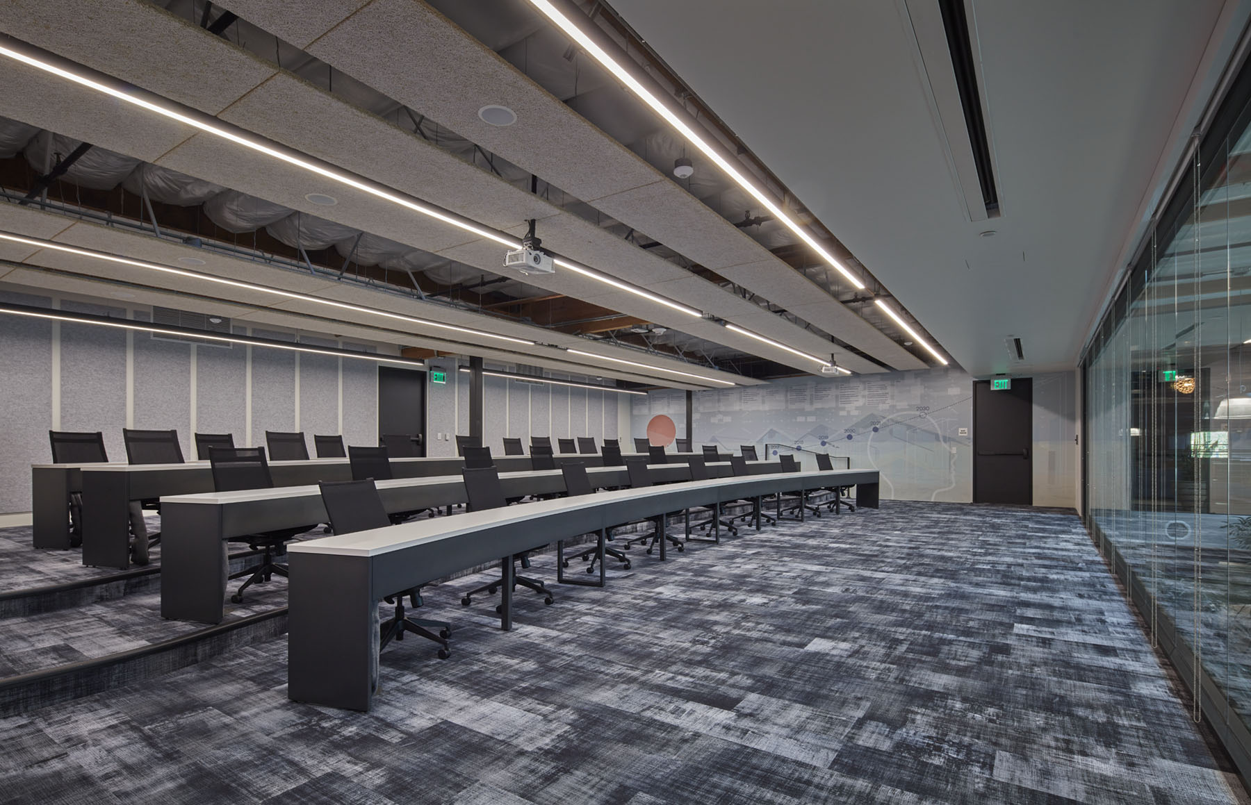The Tricon Innovation Lab showcases cutting-edge technology wrapped with LED-lit polycarbonate panels further extending this concept into the space. Tricon is an office environment crafted to make their company feel like a community, illustrating how the impact that SDA’s bespoke design can advance a vision into reality for an end user.