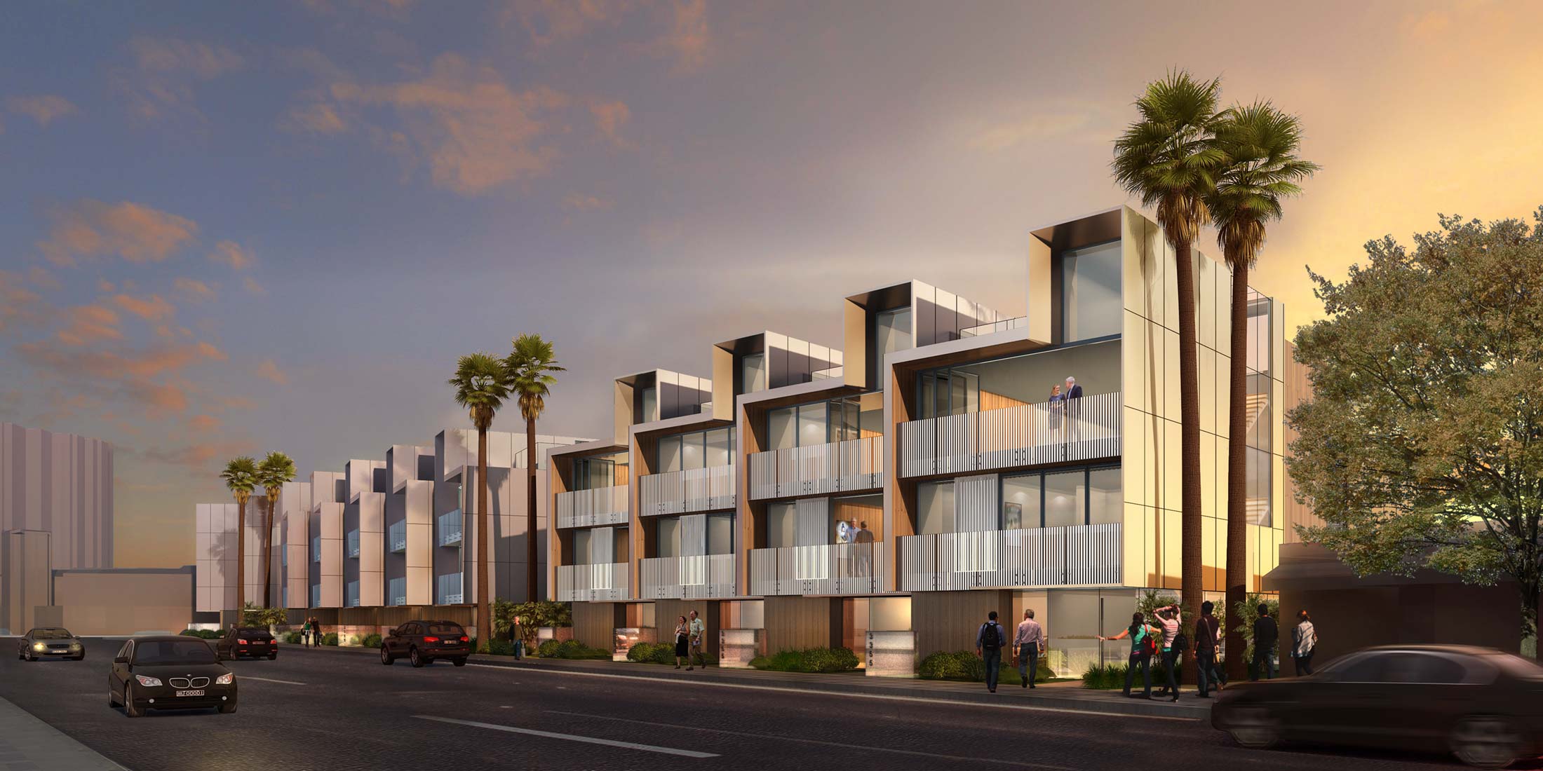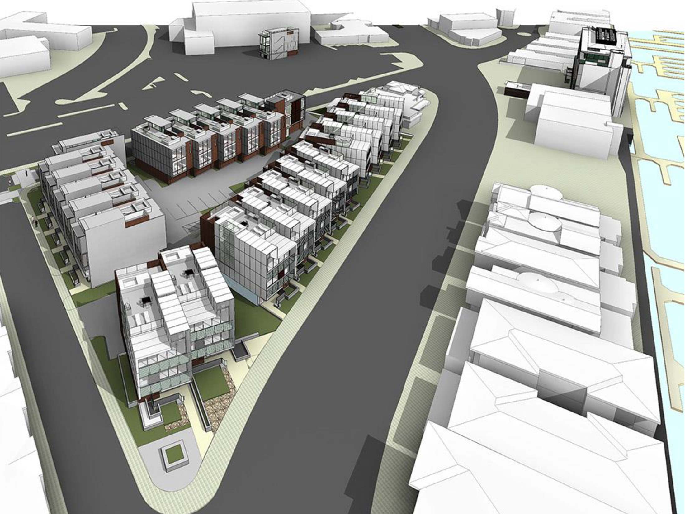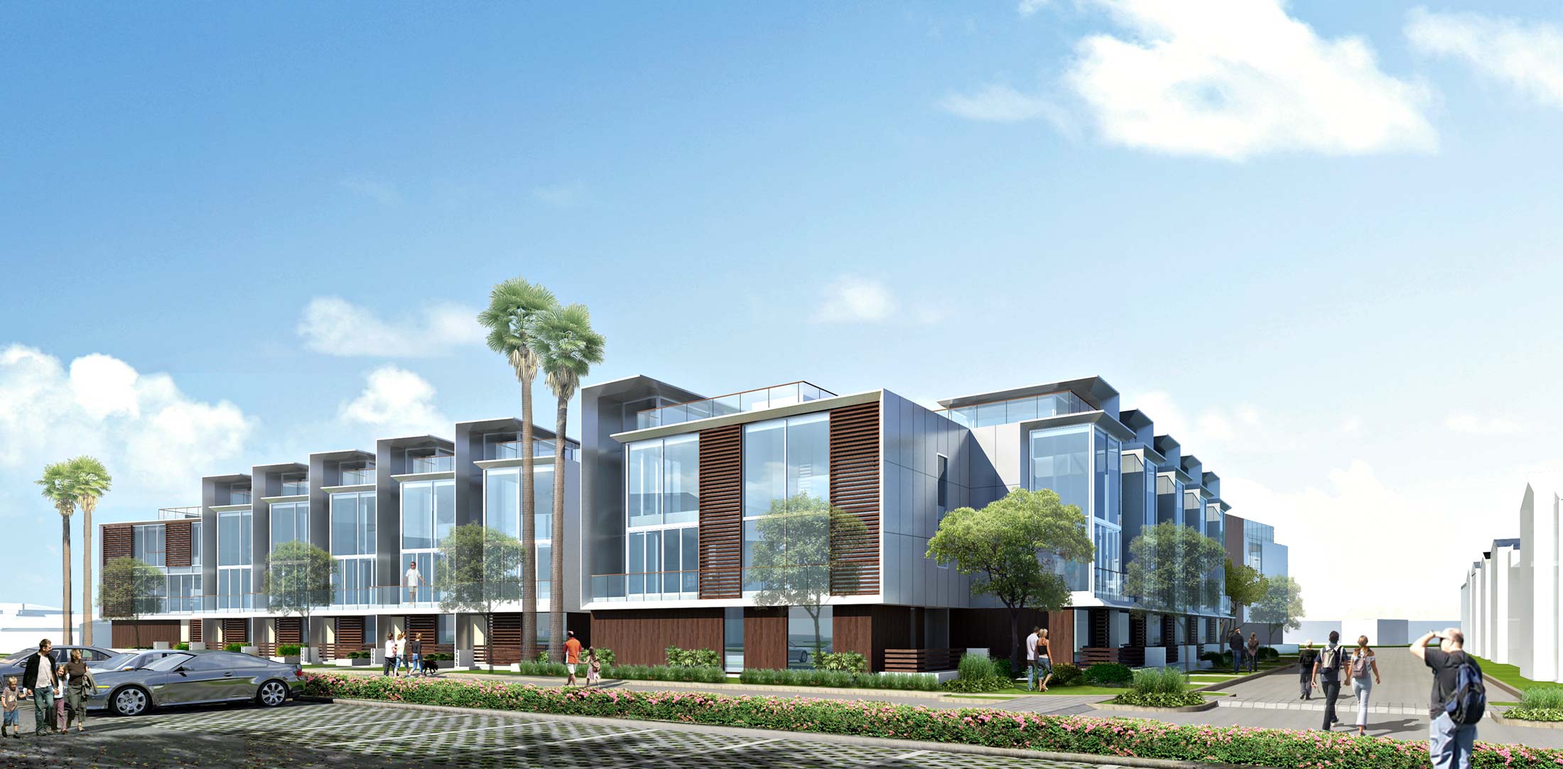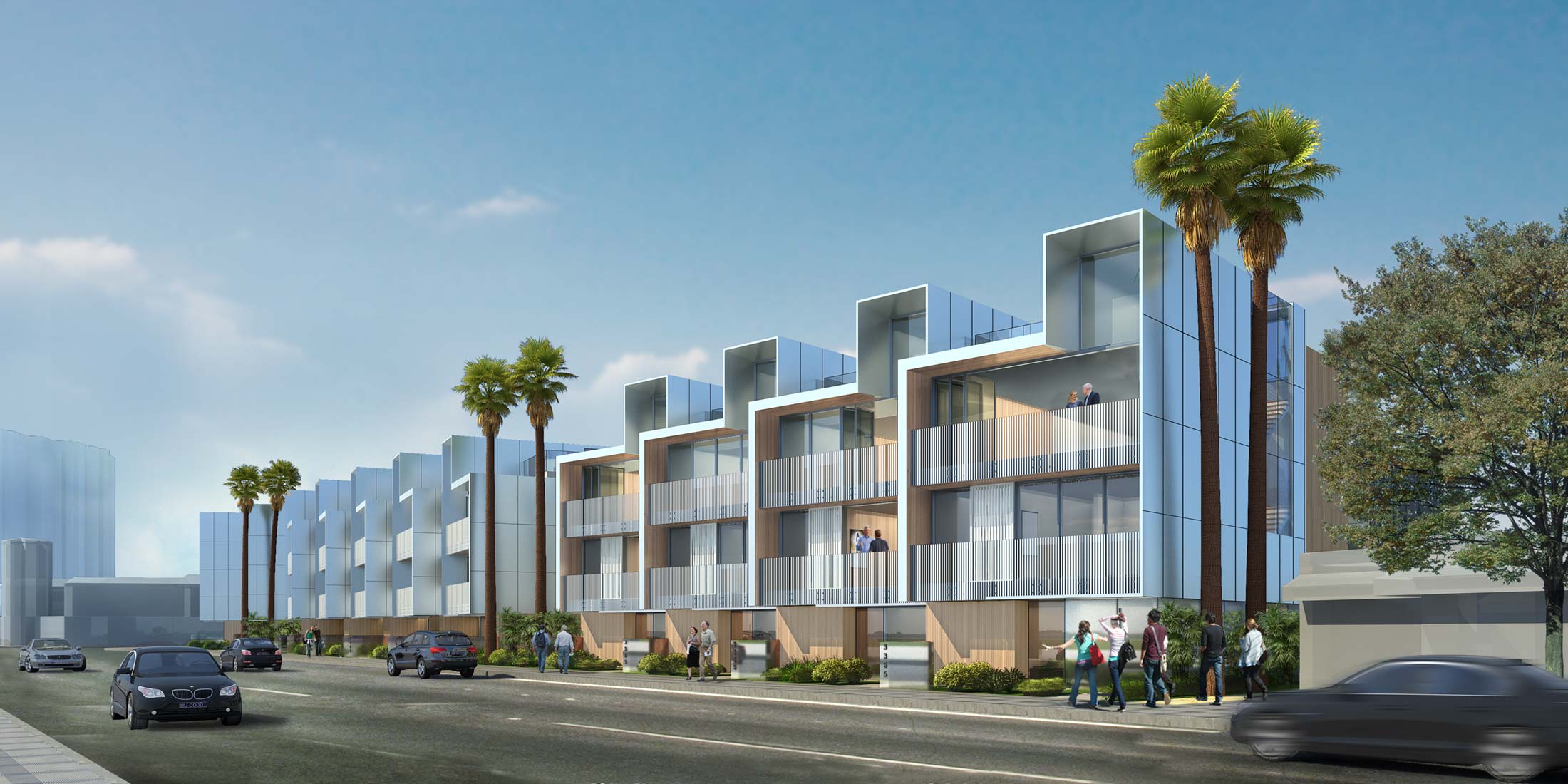 In this 23 unit townhouse project the goal is to create a residential community that breathes life into the idea of contemporary living on the peninsula. The proposed development is broken into 5 buildings which will afford a number of view corridors throughout the site. In addition, the proposed project has been designed with animated, street focused facades that will enhance pedestrian and vehicular view corridors.