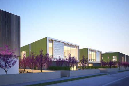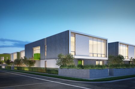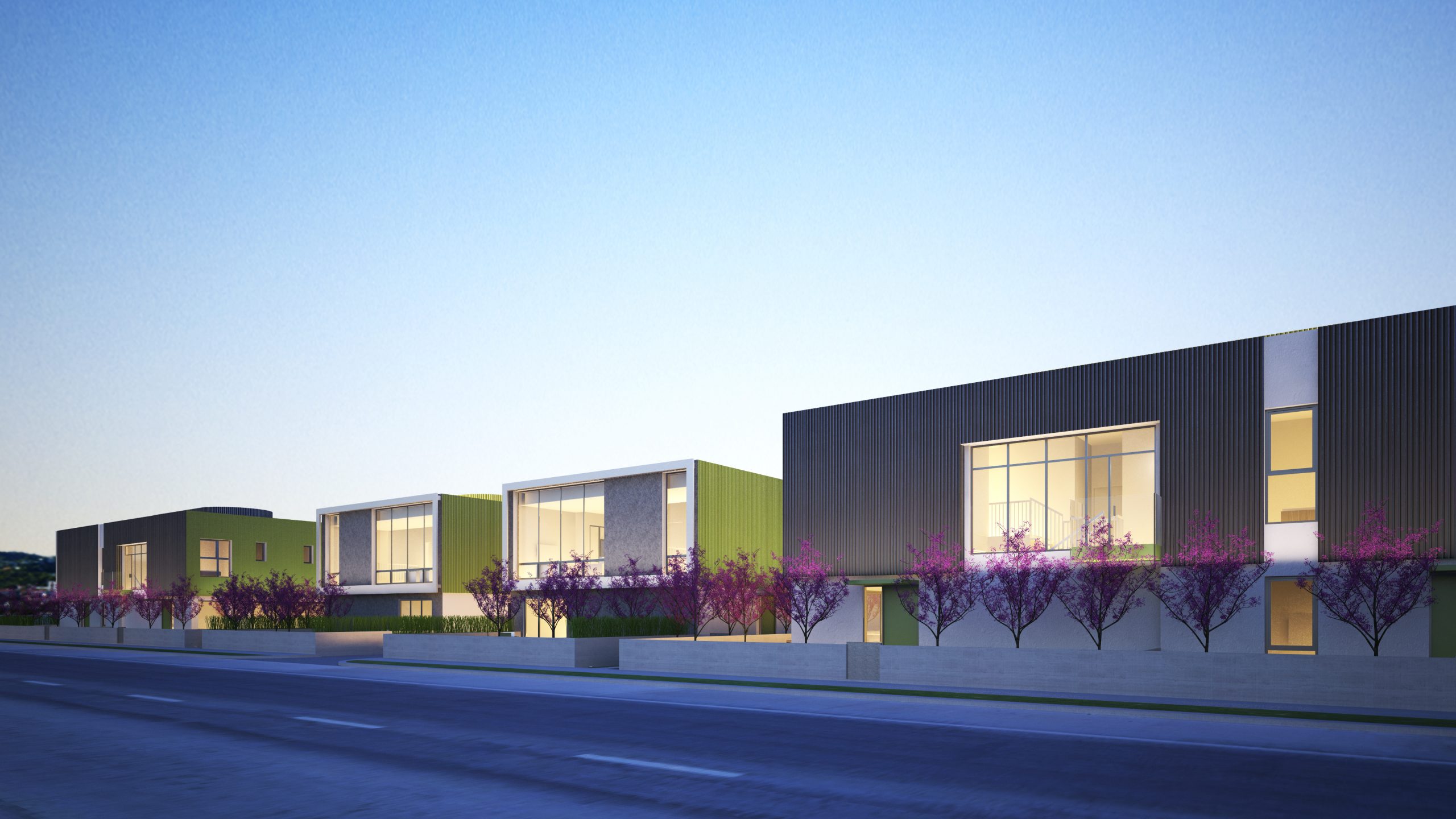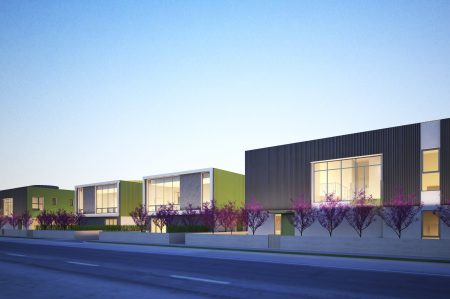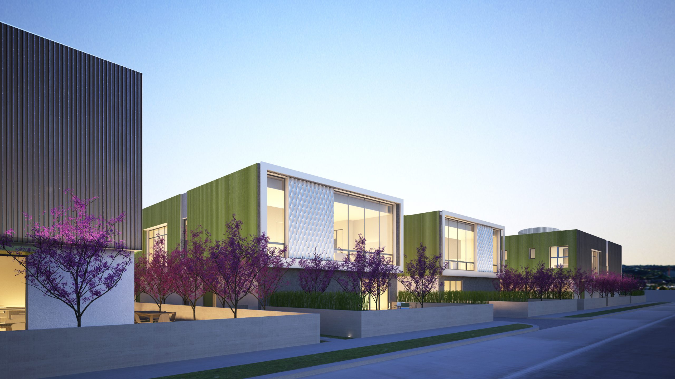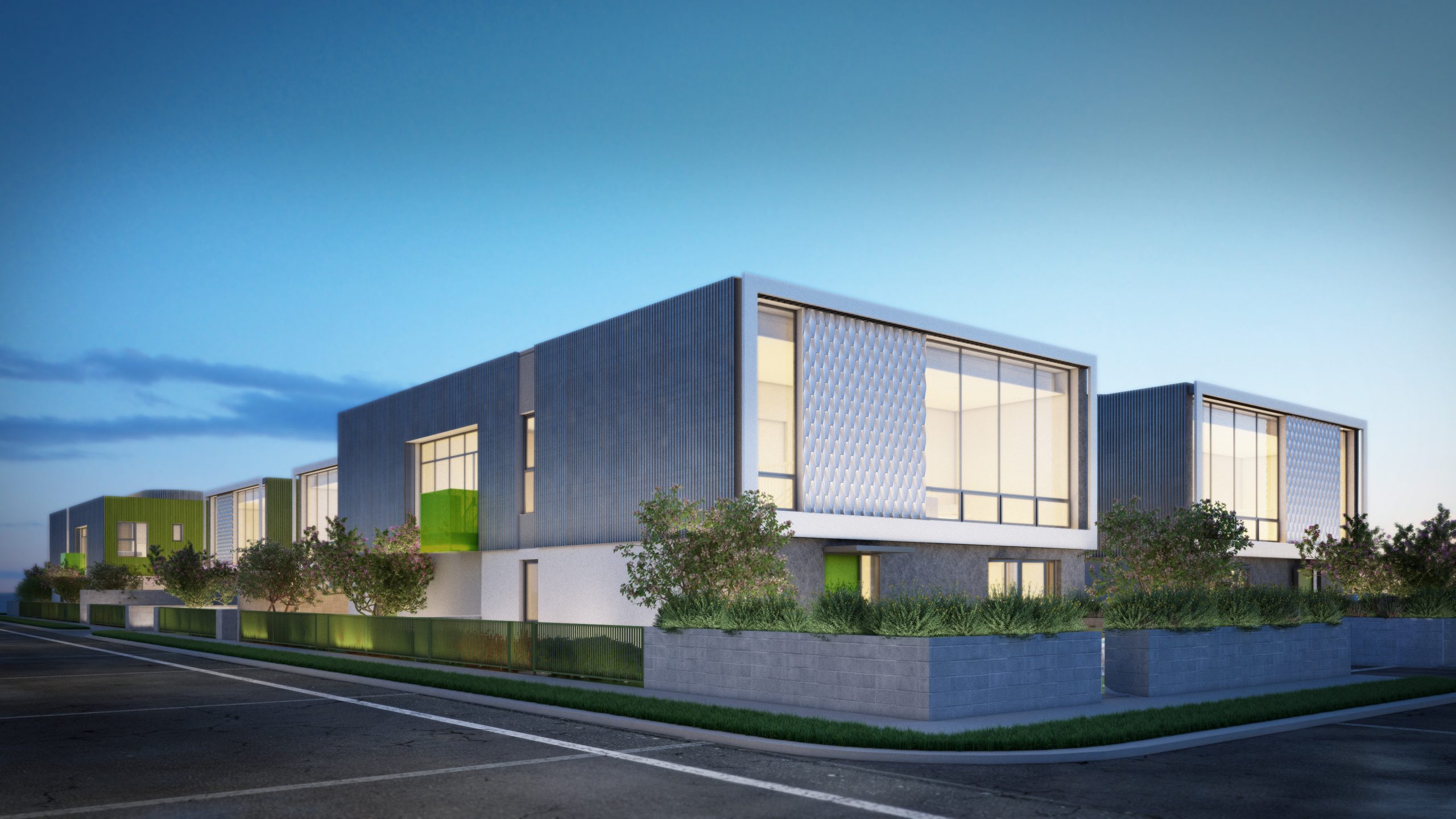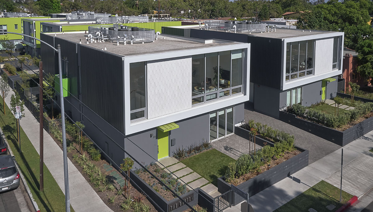 Three lots in West Hollywood were combined to create an intimately-scaled urban campus, creating and individual identity for each of the six 2-story buildings.