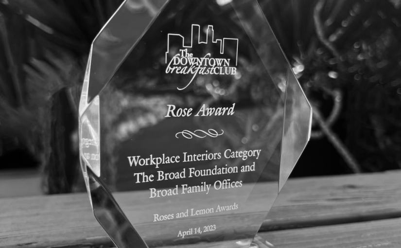 We are thrilled to announce that ShubinDonaldson received a Roses Award for The Broad Foundation in the Workplace Interiors category. Presented by The Downtown Breakfast Club, the Roses and Lemon Awards celebrates with roses Downtown Los Angeles’s best new entertainment and development while calling-out a Lemon in need of development. Led by Partner Mark Hershman, this project asks how can a series of curated spatial experiences help promote a company’s values?